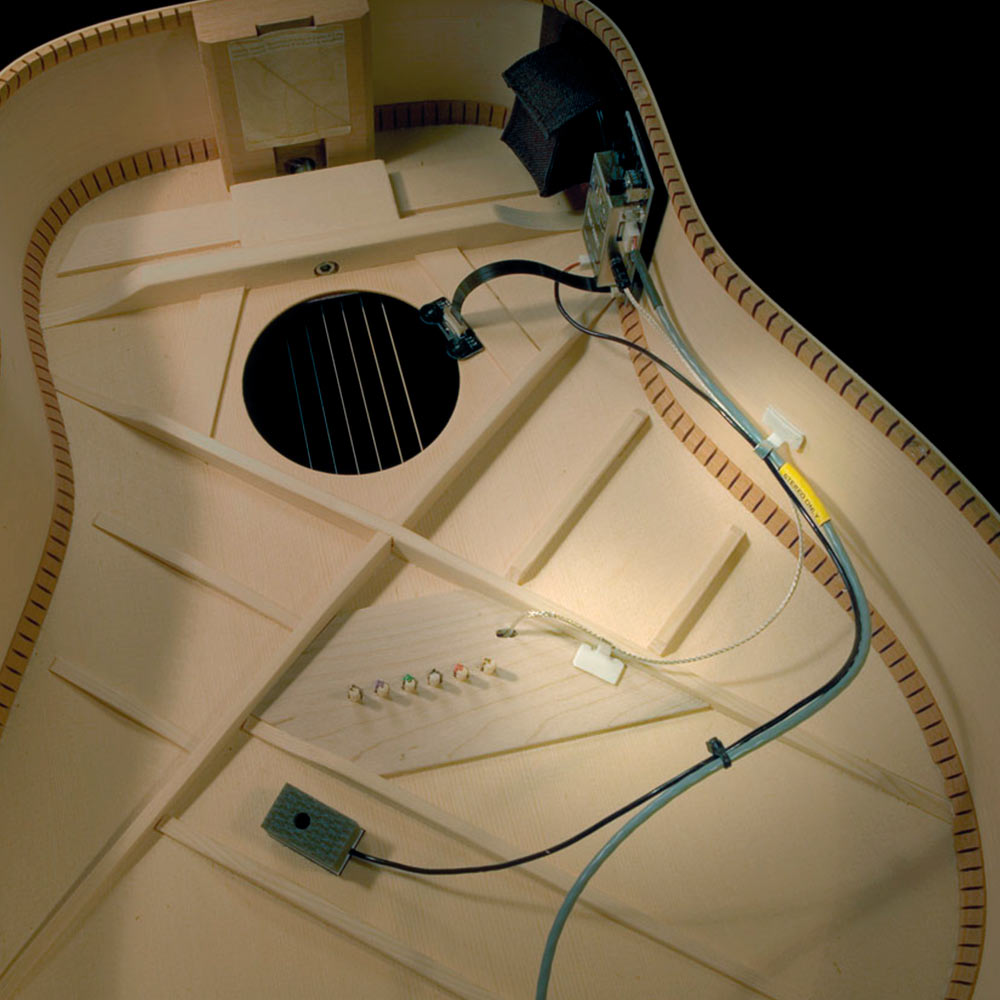 Asegure los cables de pastilla dentro de la guitarra acústica