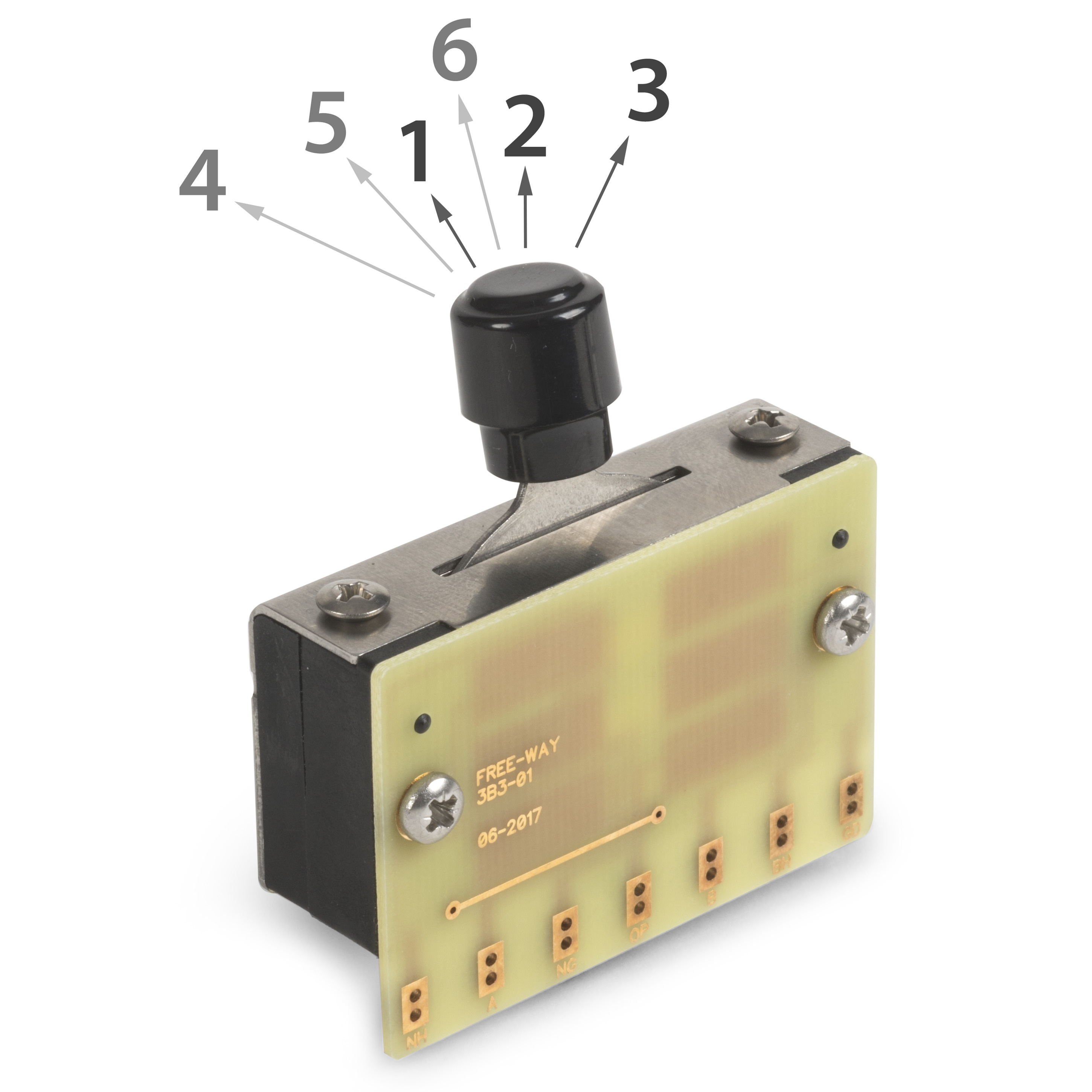 ¡Por fin puede obtener toda la flexibilidad que desea sin agujeros feos ni interruptores adicionales! Este selector de 3-Way/6 posiciones de forma libre lleva el selector 3 posiciones convencional tres pasos más allá.
