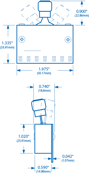 - Vástago de la palanca: 0,050" x 0,190" (1,27 mm x 4,82 mm)