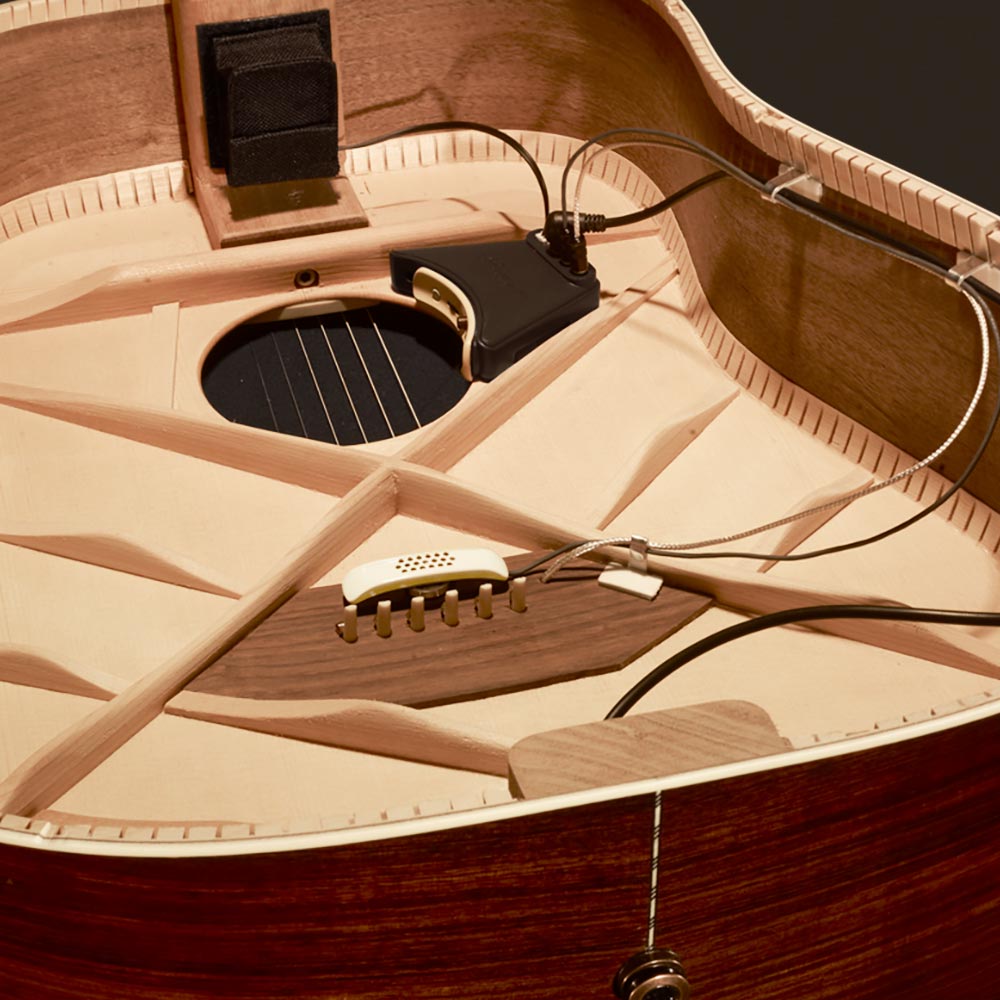 Tru-Mic se adhiere a la placa del puente dentro de una guitarra con soporte en X. Pesa solo 1/2 onzas, lo que evita cualquier efecto amortiguador significativo en el sonido natural del instrumento. La carcasa coloca el micrófono a solo 3 milímetros de la superficie de la guitarra, para lograr una ganancia muy alta antes de la feedback y capturar el sonido de toda la parte superior de la guitarra vibratoria. La calidad de sonido y la resistencia de feedback del Tru-Mic lo distinguen de otros sistemas de micrófono/transductor "híbridos" que se basan principalmente en pastilla por debajo de la plataforma.