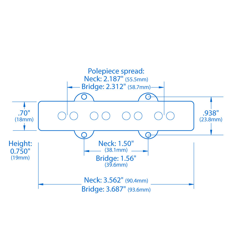 Nota: Las dimensiones de la pastilla de bajo de jazz han variado ligeramente con el paso de los años. Mide tu cavidades de pastillas antes de sustituir las recogidas anteriores.