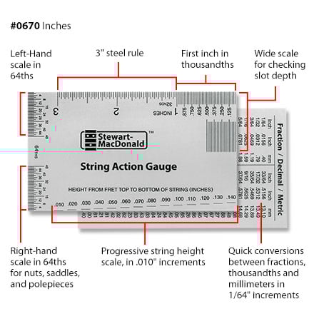 Dentro del trío se incluye nuestro calibrador de acción de cuerdas, una herramienta imprescindible para medir la altura de las cuerdas, cejuelas, silletas y piezas polares de las pastillas. Diseñada específicamente para instrumentos de cuerda, es más rápida y precisa que una regla estándar, lo que te permite ajustar tu guitarra o bajo con total precisión.