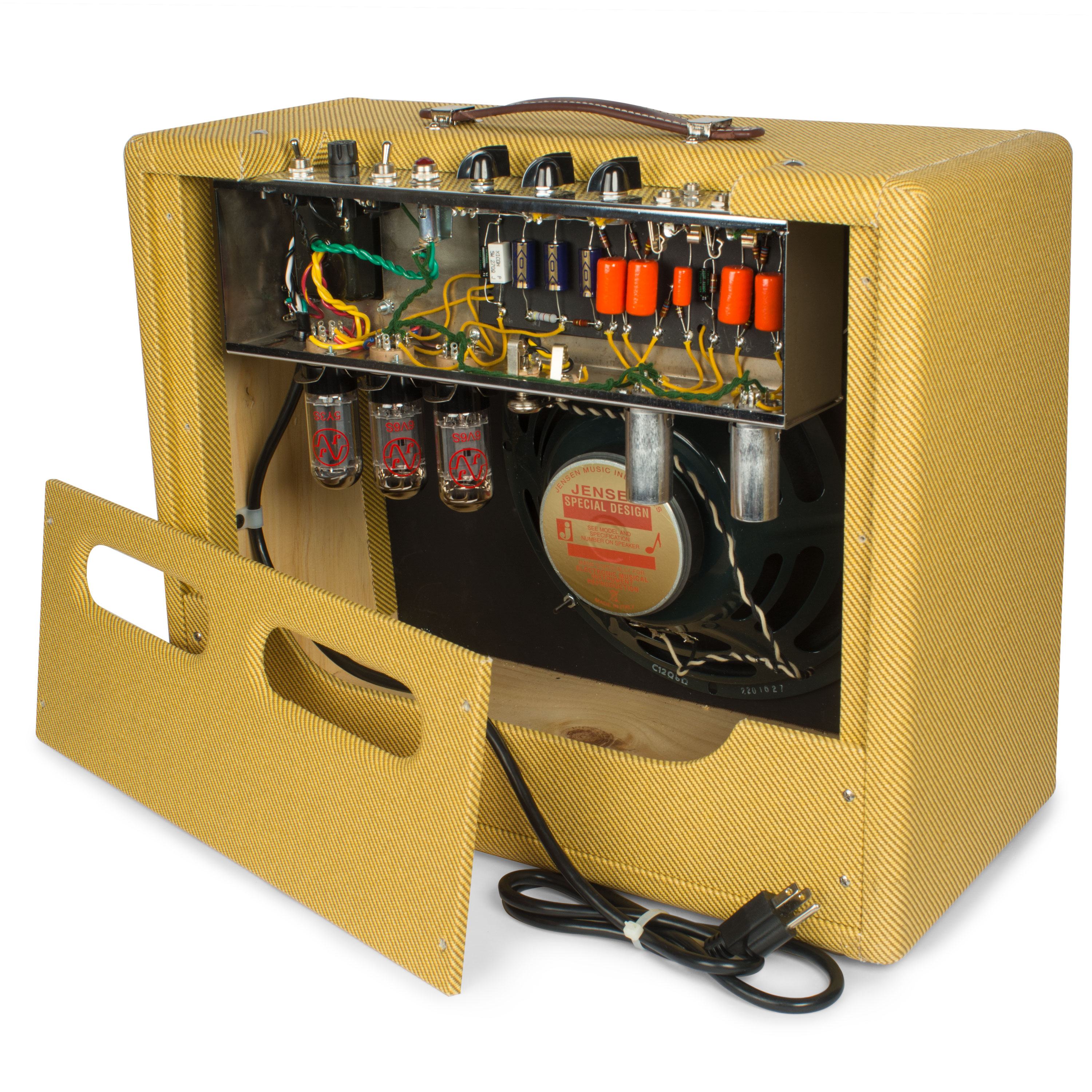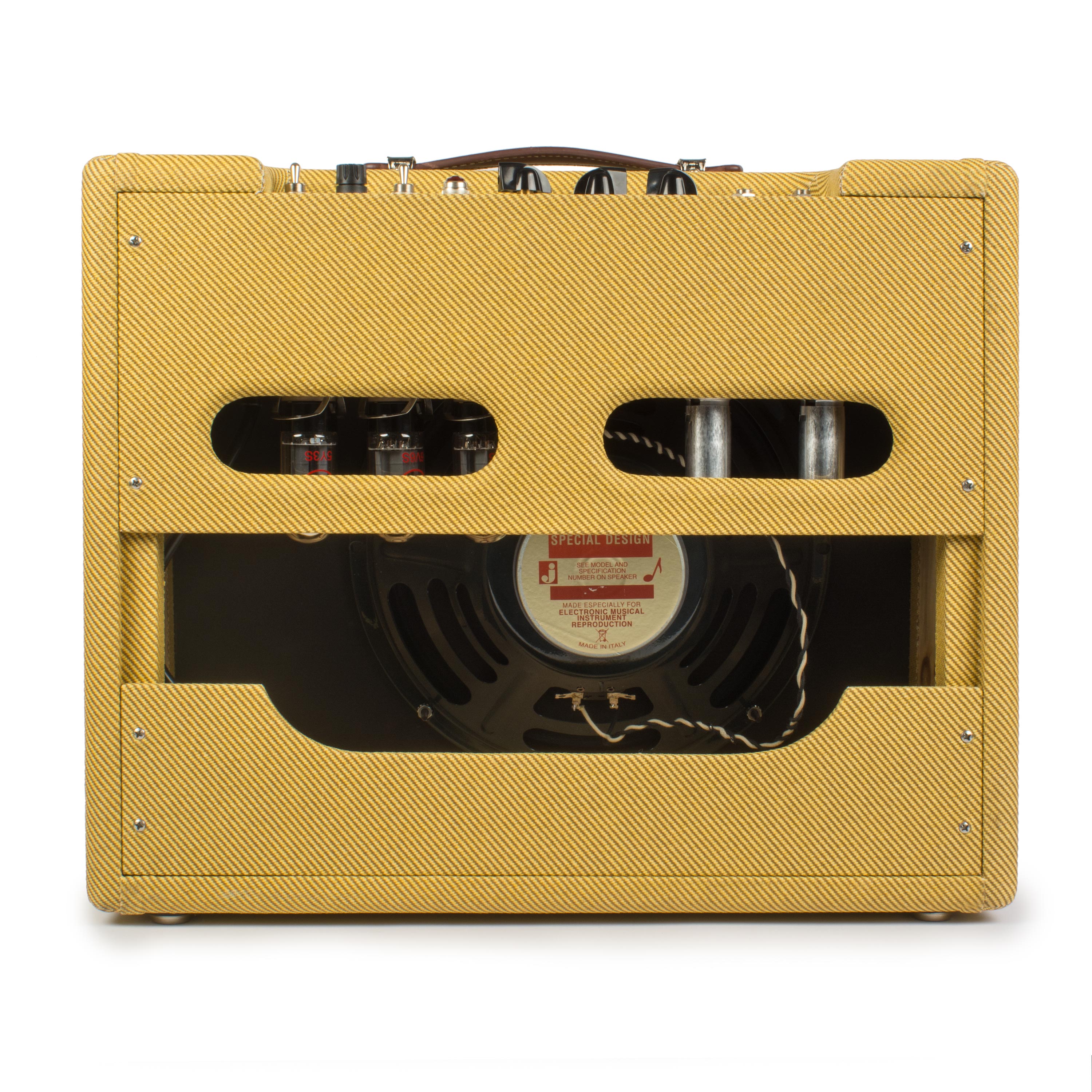 - Válvulas prémium 6V6, 12AX7, 12AY7 y 5Y3, junto con transformadores de especificaciones vintage para lograr el tono clásico perfecto de tu amplificador