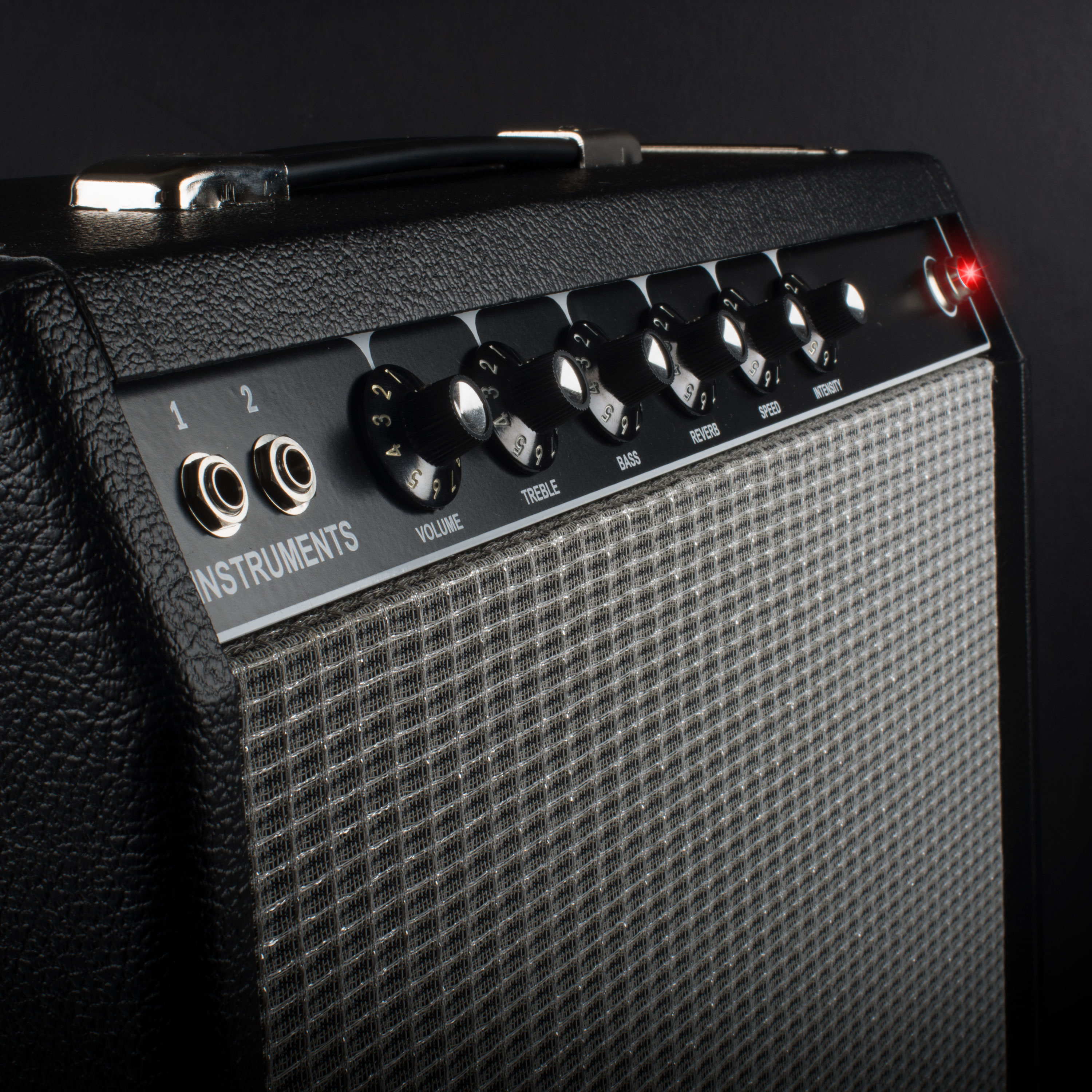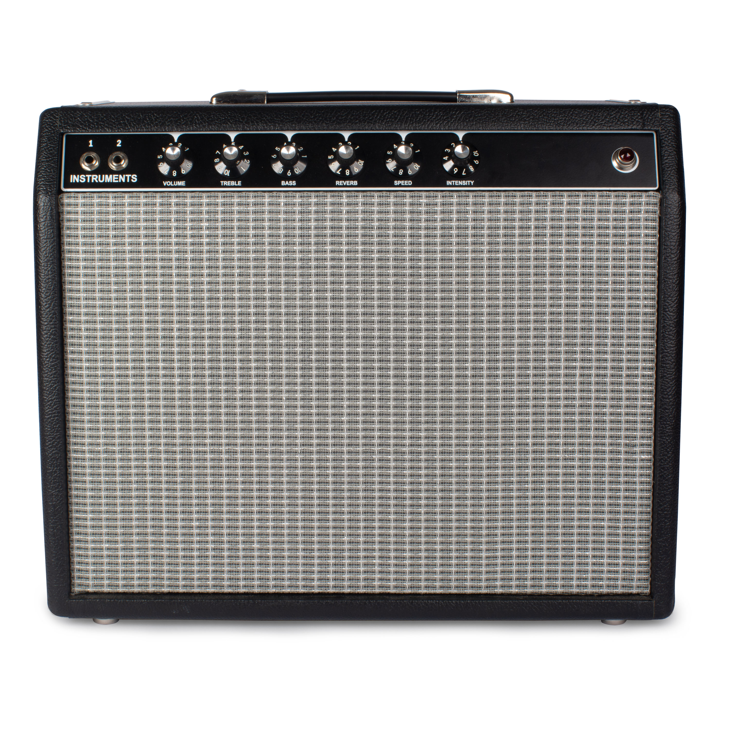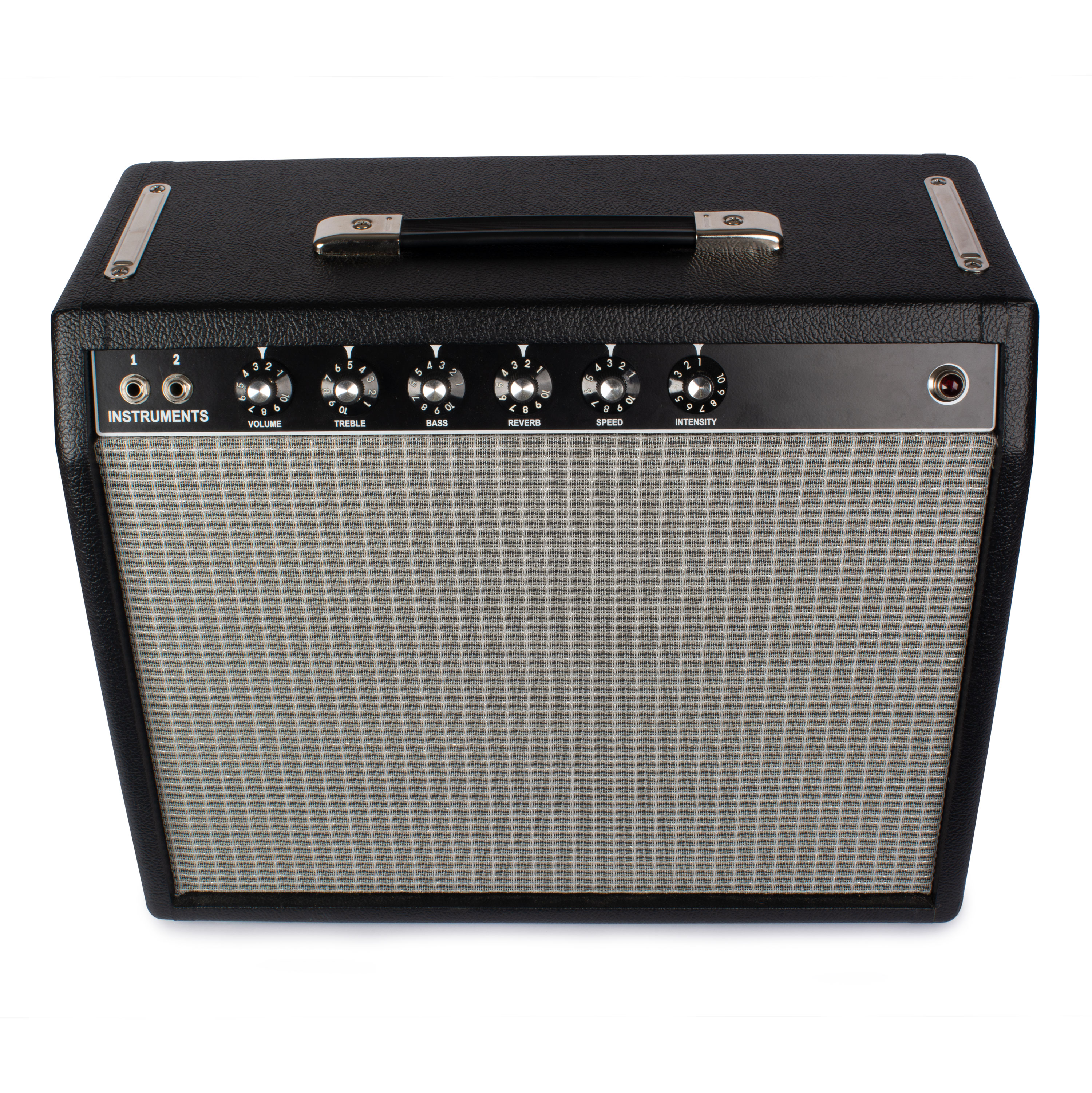 El miembro más pequeño del 60 familia Blackface que ofrece reverberación y tremolo, este amplificador se hizo famoso como una máquina de ensueño con un toque pop. Los aficionados atesoran sus saturación temprana del espectro grave impulsados por un par de 6V6 tubos.