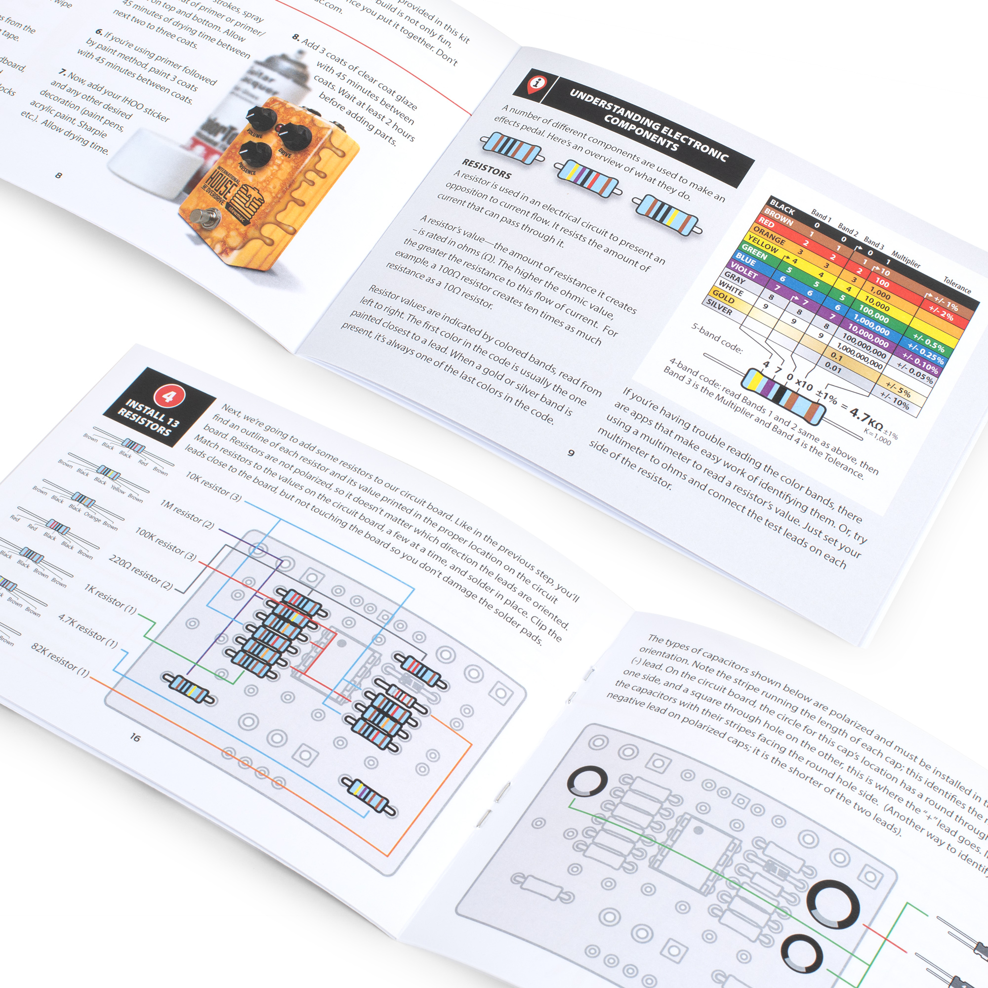 Sin conjeturas, sin concesiones. Nuestro kit incluye todas las piezas de alta calidad que necesita para construir un pedal que dure toda la vida, desde resistencias y condensadores hasta IC personalizados y envolventes premium.