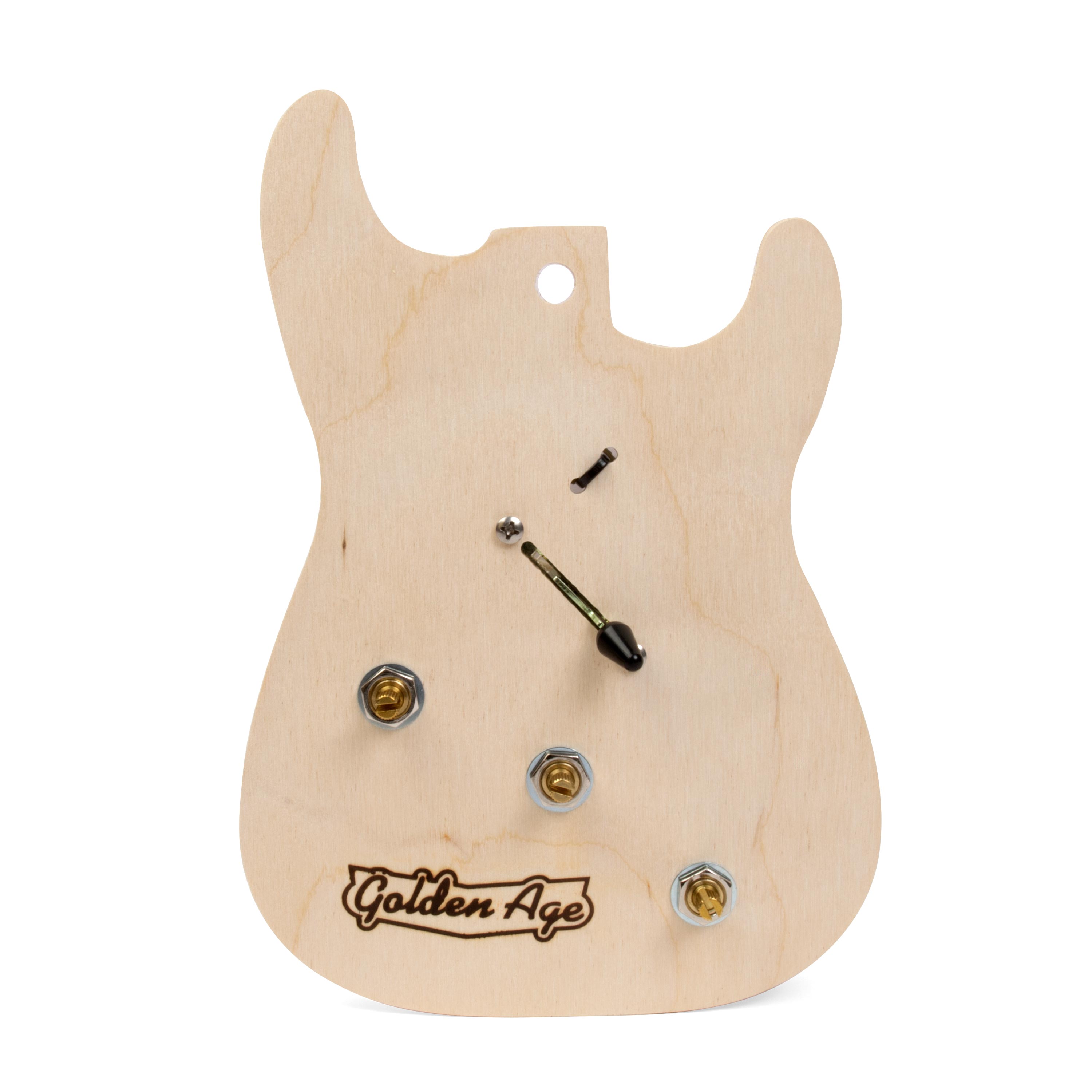 Cada arnés Golden Age viene montado en una plantilla de contrachapado reutilizable, que es una herramienta en sí misma: guárdela para futuros trabajos de cableado. La plantilla sujeta los componentes correctamente para que el arnés terminado encaje perfectamente en la cavidad del cableado de la guitarra. Simplemente suelda el jack y los cables conductores del pastilla al arnés.