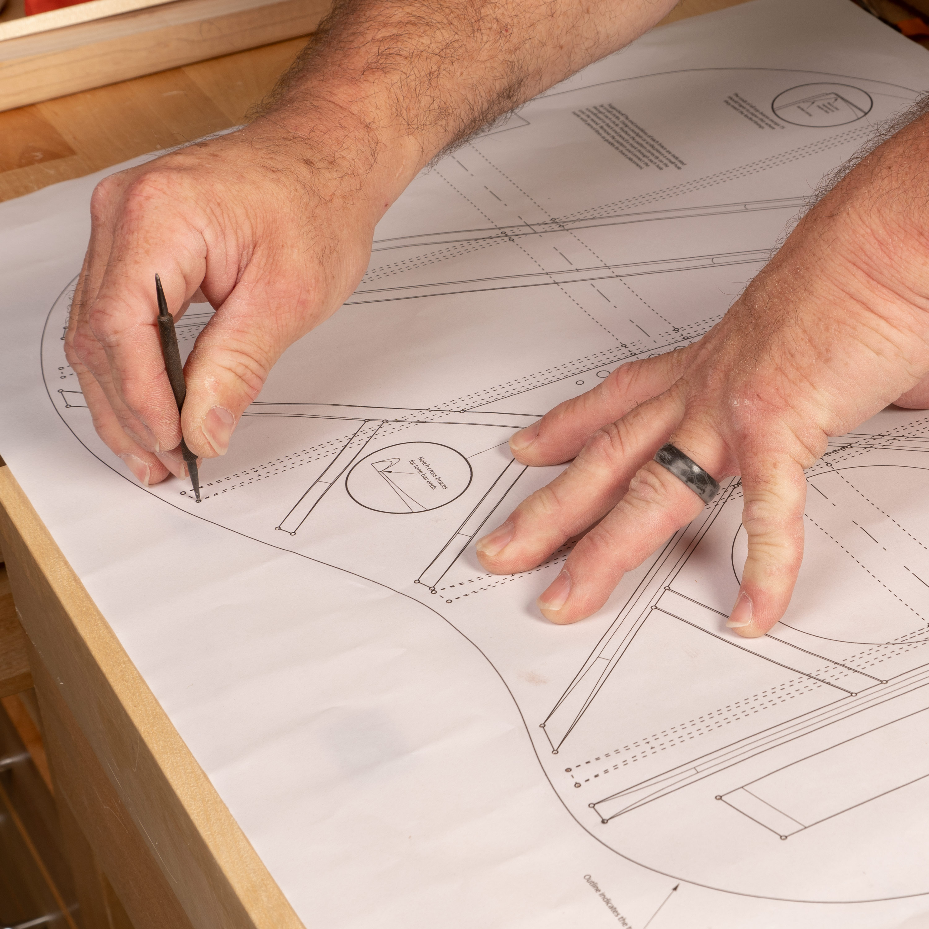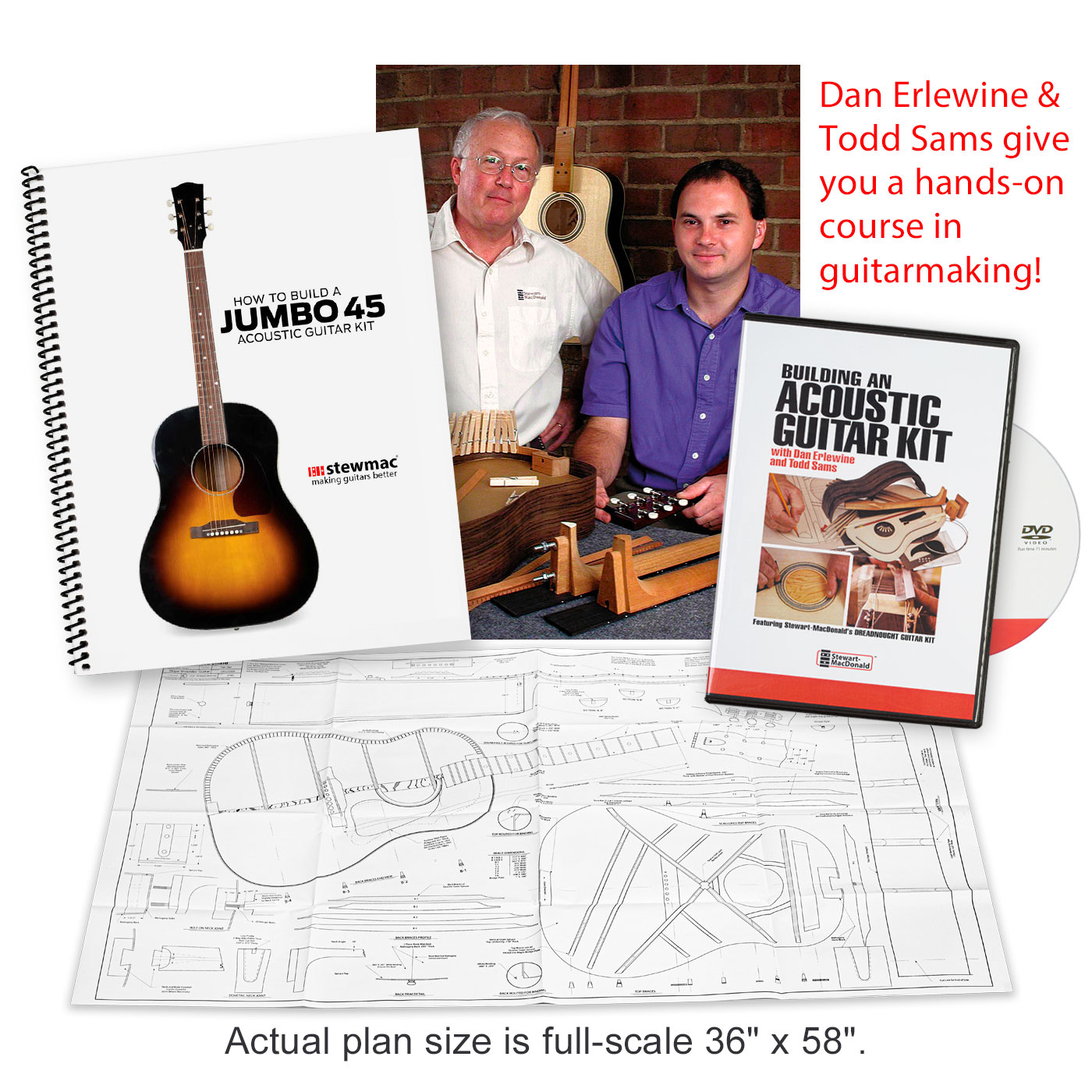 Este kit también incluye nuestro mejor servicio al cliente del sector. Nuestros técnicos están a su disposición si tiene alguna pregunta durante la construcción. Su kit incluye instrucciones detalladas paso a paso a todo color, un plano de varetaje a escala completa y un plano técnico para que tenga el conocimiento y la confianza necesarios para terminar esta construcción con facilidad. También recibirás un DVD de 71 minutos que ilustra técnicas clave de fabricación de guitarras como el ajuste de la costilla, binding, la configuración e instalación del mástil, la configuración de la cejuela y el puente, y mucho más.