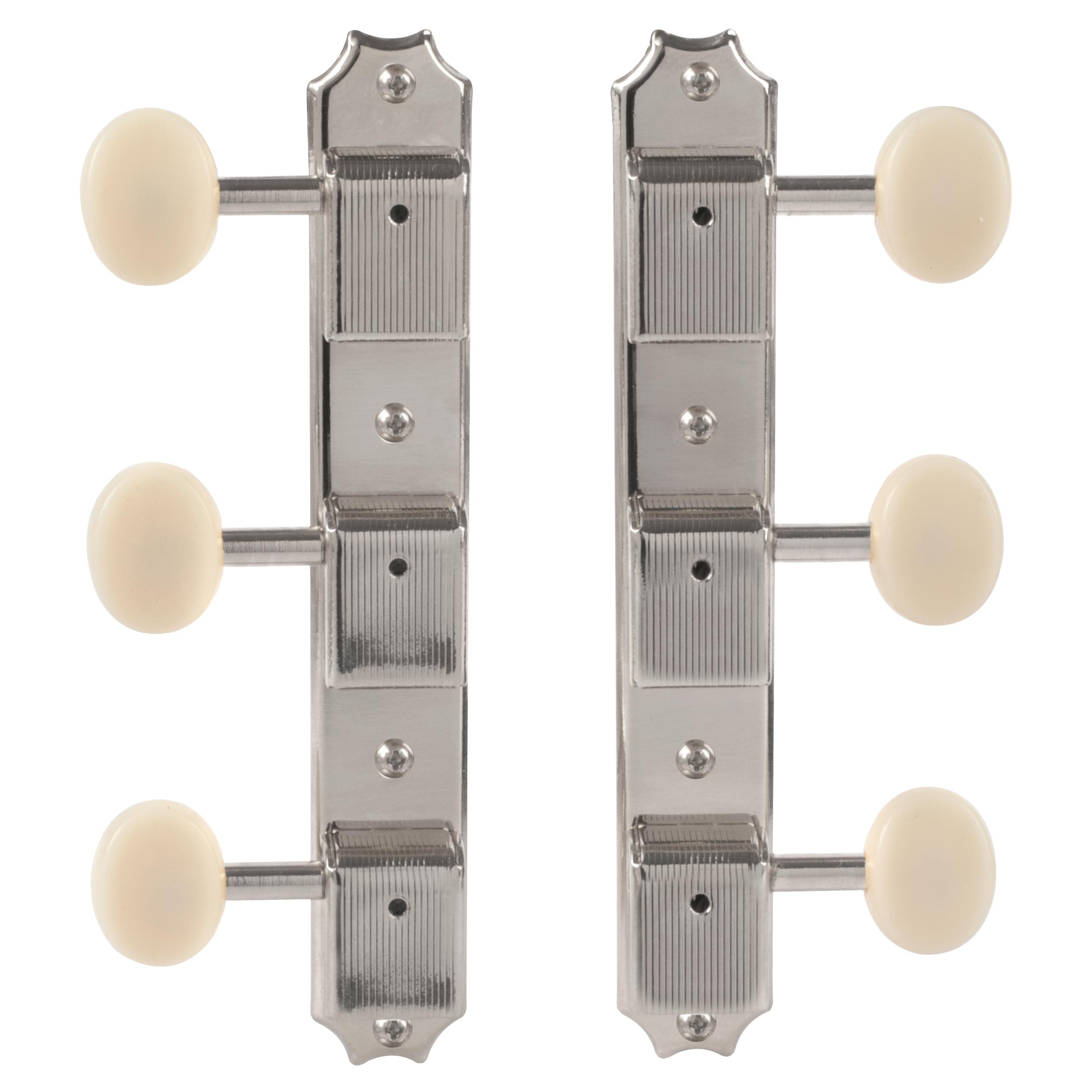 - Los clavijeros Golden Age de estilo vintage en níquel con botones blancos