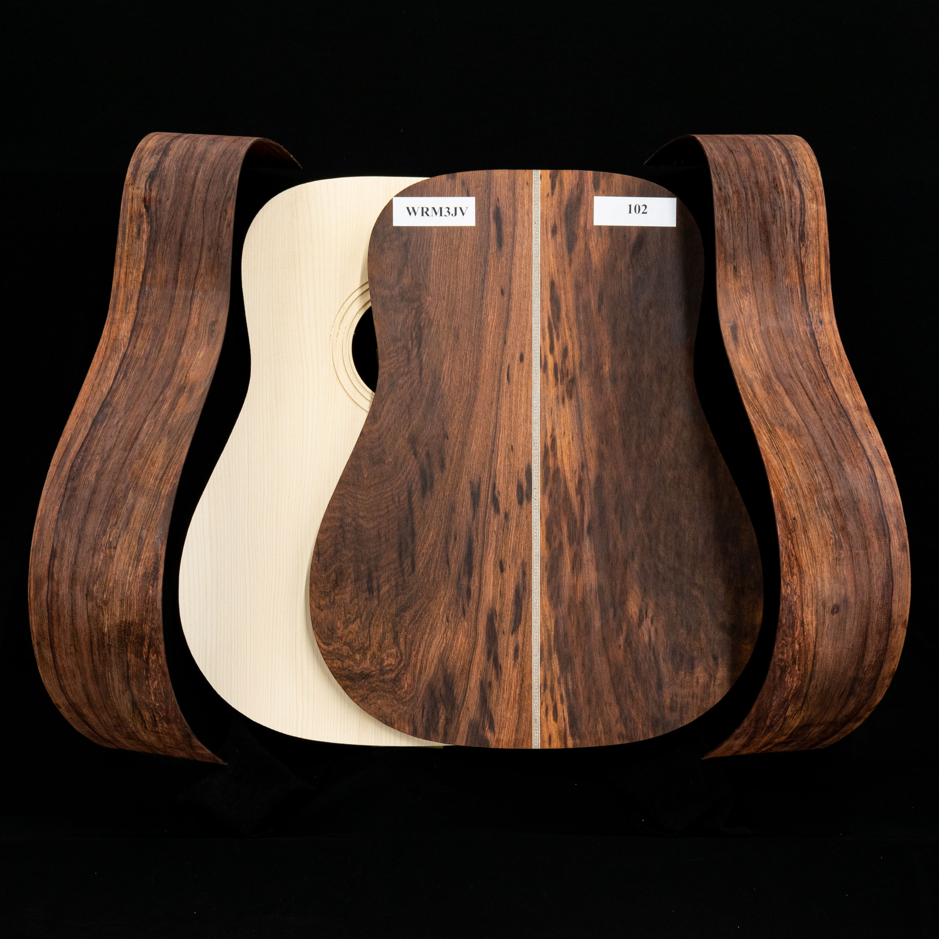 Como sabe, cada pieza de madera es única y tiene su propia historia para contar. Al examinar estas guitarras invaluables, encontramos algunas con elegantes líneas de grano entrelazadas y otras que eran salvajes y dinámicas. Por este motivo, hemos fotografiado cada uno de estos kits individualmente; lo que ve en la primera imagen es la madera real que recibirá. Y como constructor, sabemos que quieres elegir la madera que te guste.
