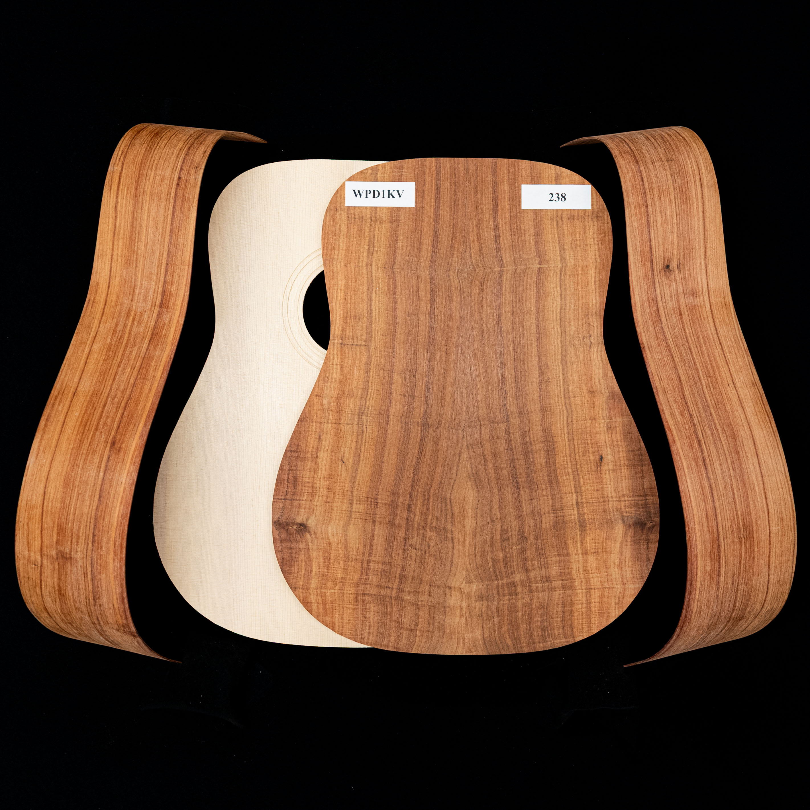 Hemos fotografiado cada conjunto individualmente; lo que ves en la primera imagen es la madera real que recibirás. Acerque el zoom y eche un vistazo a la figura única de cada conjunto, el grano y cada detalle de la espalda, los laterales y la parte superior de su kit y prepárese para construir la guitarra de sus sueños.