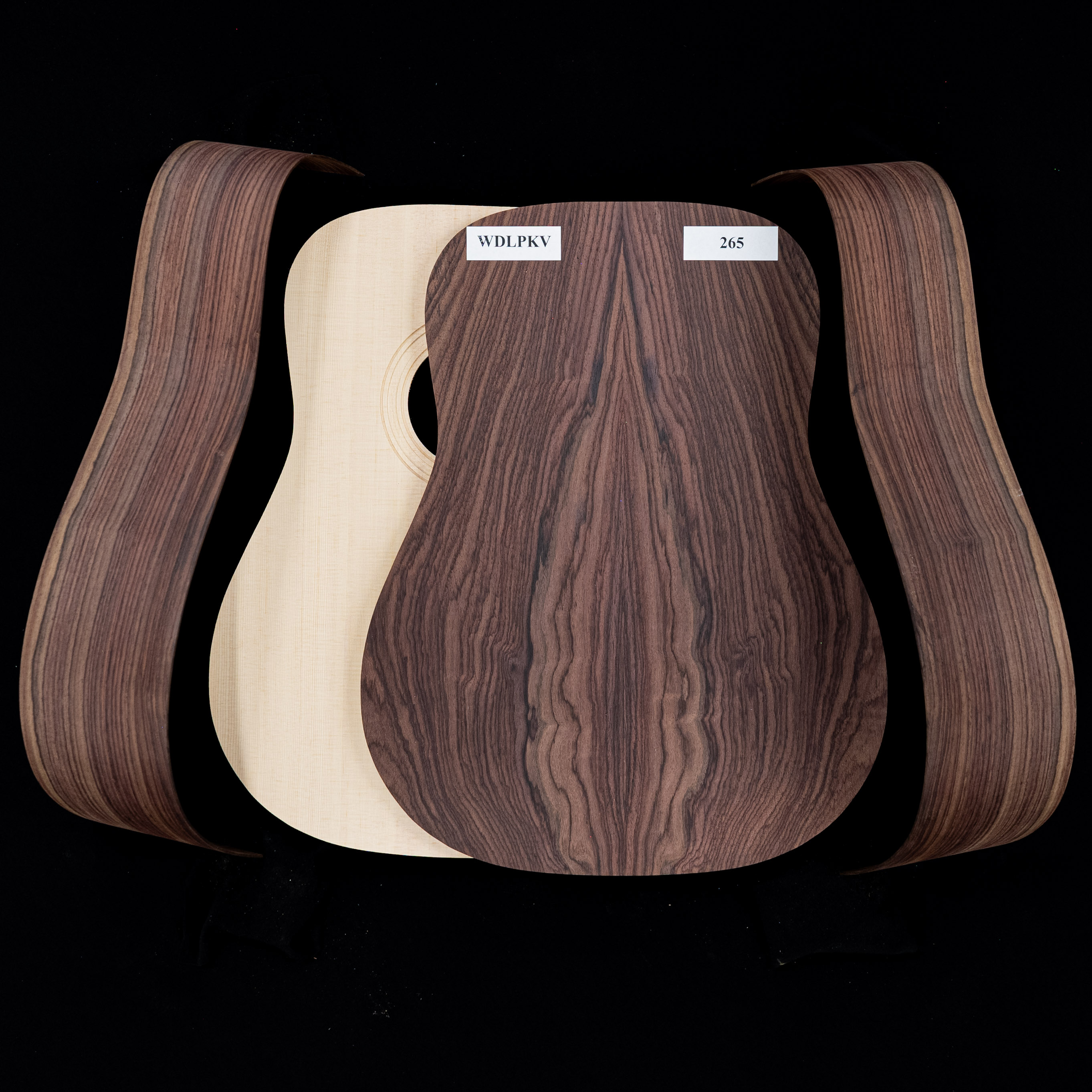 Aunque el palisandro de grano silvestre a veces puede ser un desafío con el que trabajar, hemos cuidado de seleccionar piezas estables, planas y bien comportadas. Hemos hecho una correspondencia precisa y unido la espalda y la hemos cortado para darle forma. Ahora puedes construir la guitarra de tus sueños con esta madera visualmente llamativa y fantástica.