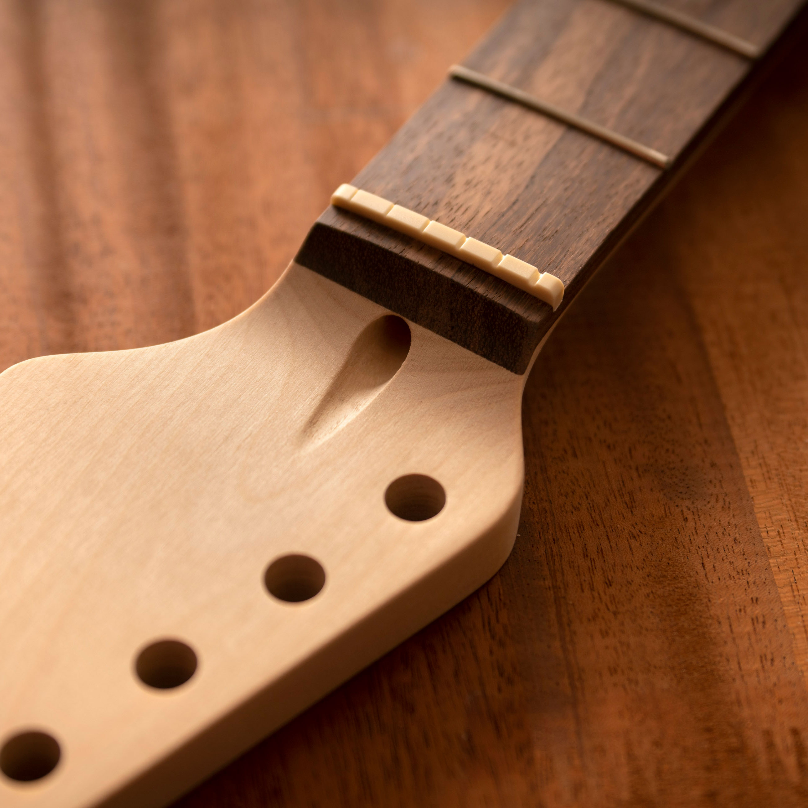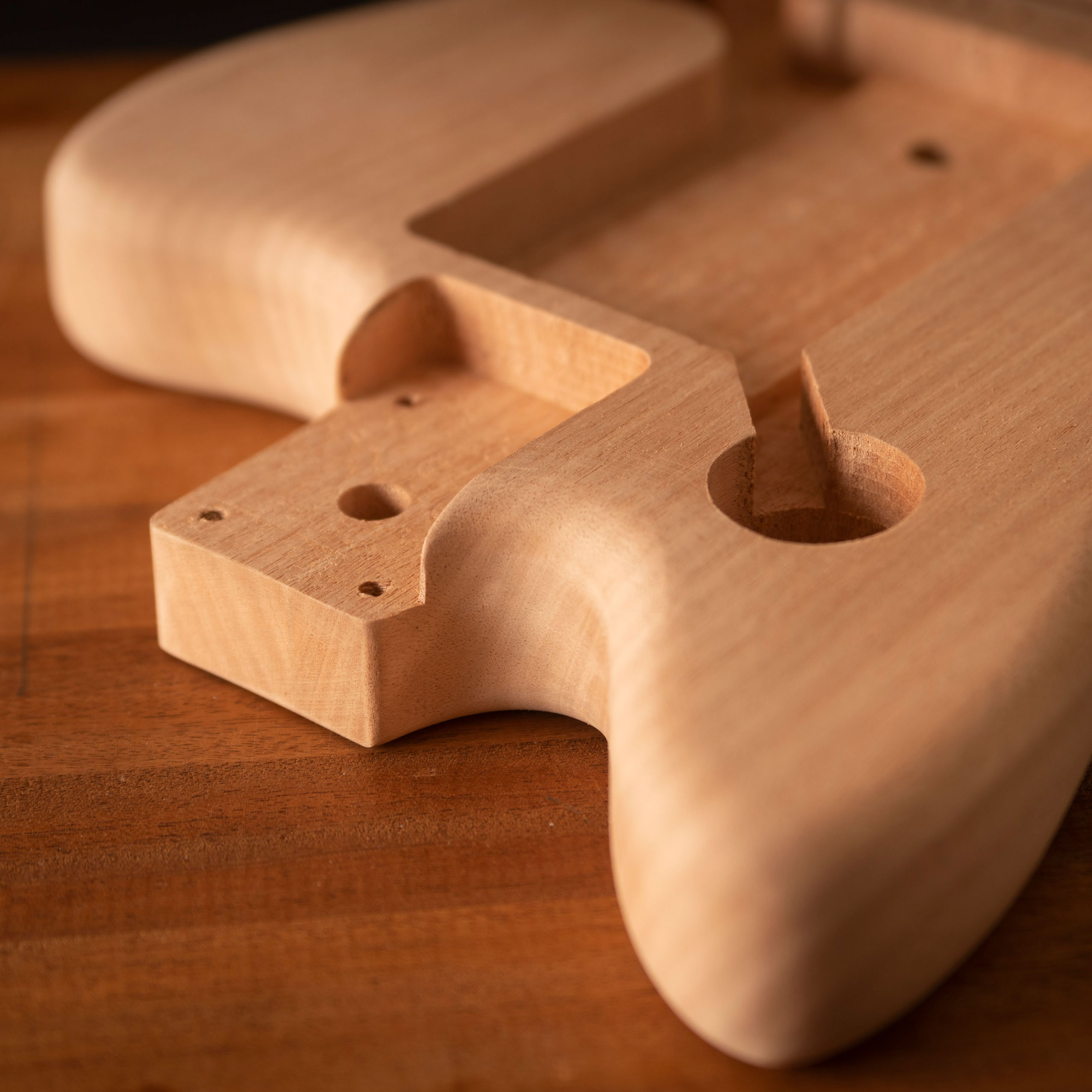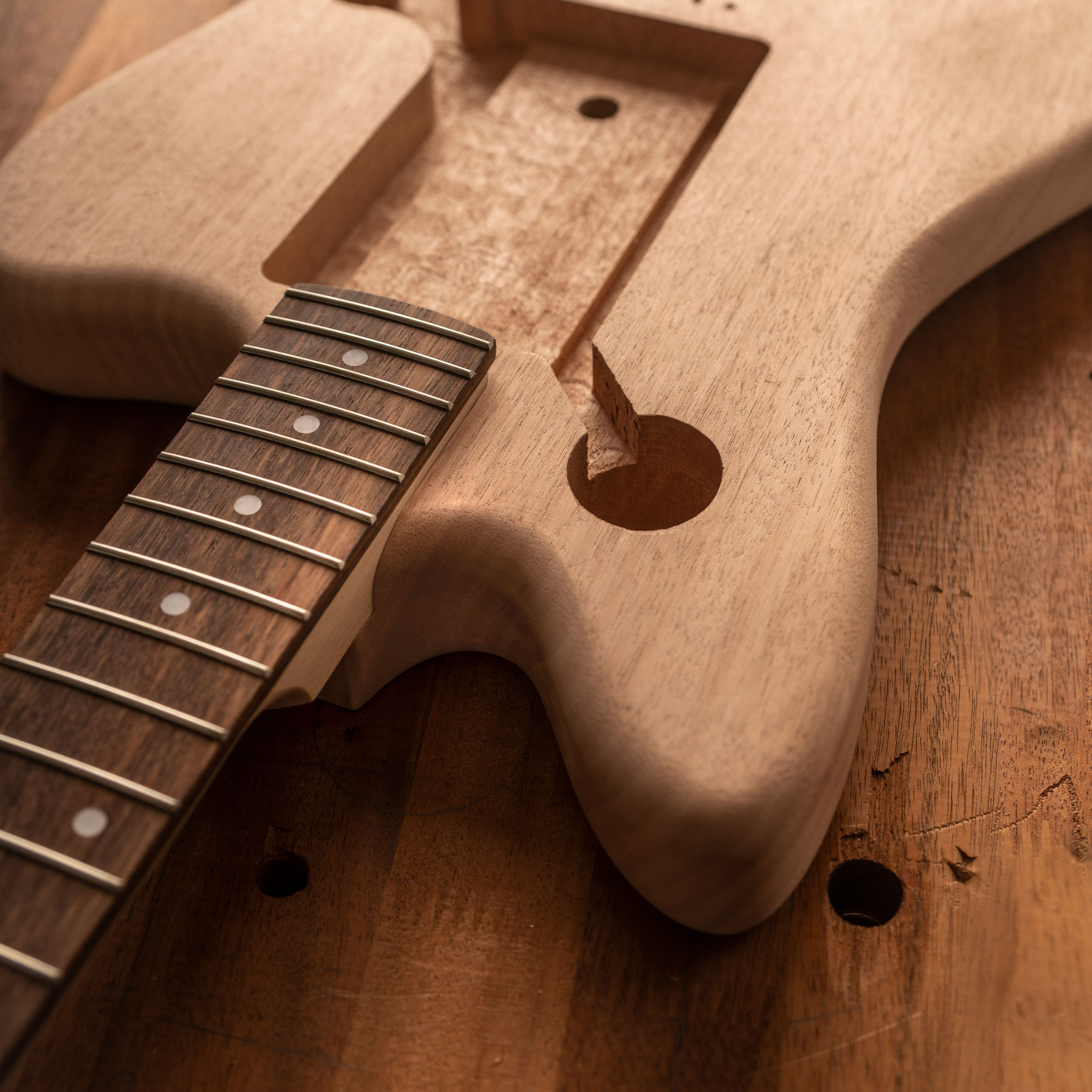 El mástil se adapta a cada cuerpo para una conexión sólida y una fácil instalación. El fresado está limpio y los orificios del puente se perforan en el lugar perfecto. Con una preparación mínima, estás listo para aplicar el acabado. Para que sea aún más fácil, ya hemos cableado las camionetas y potenciómetros, ¡solo unas pocas juntas de soldadura y listo!