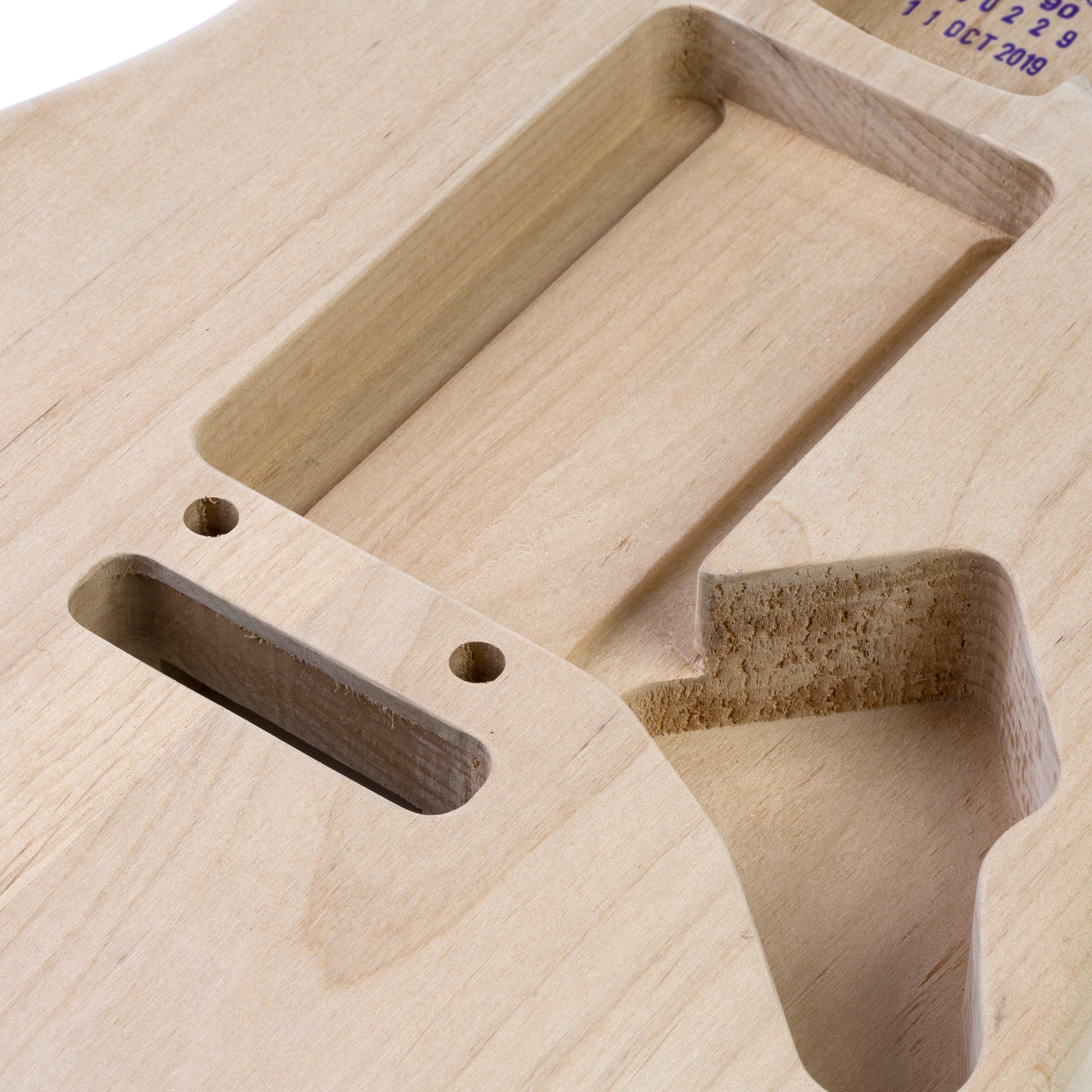 - La cavidad del mástil, las cavidades de la pastilla y los orificios del puente se enrutan y perforan