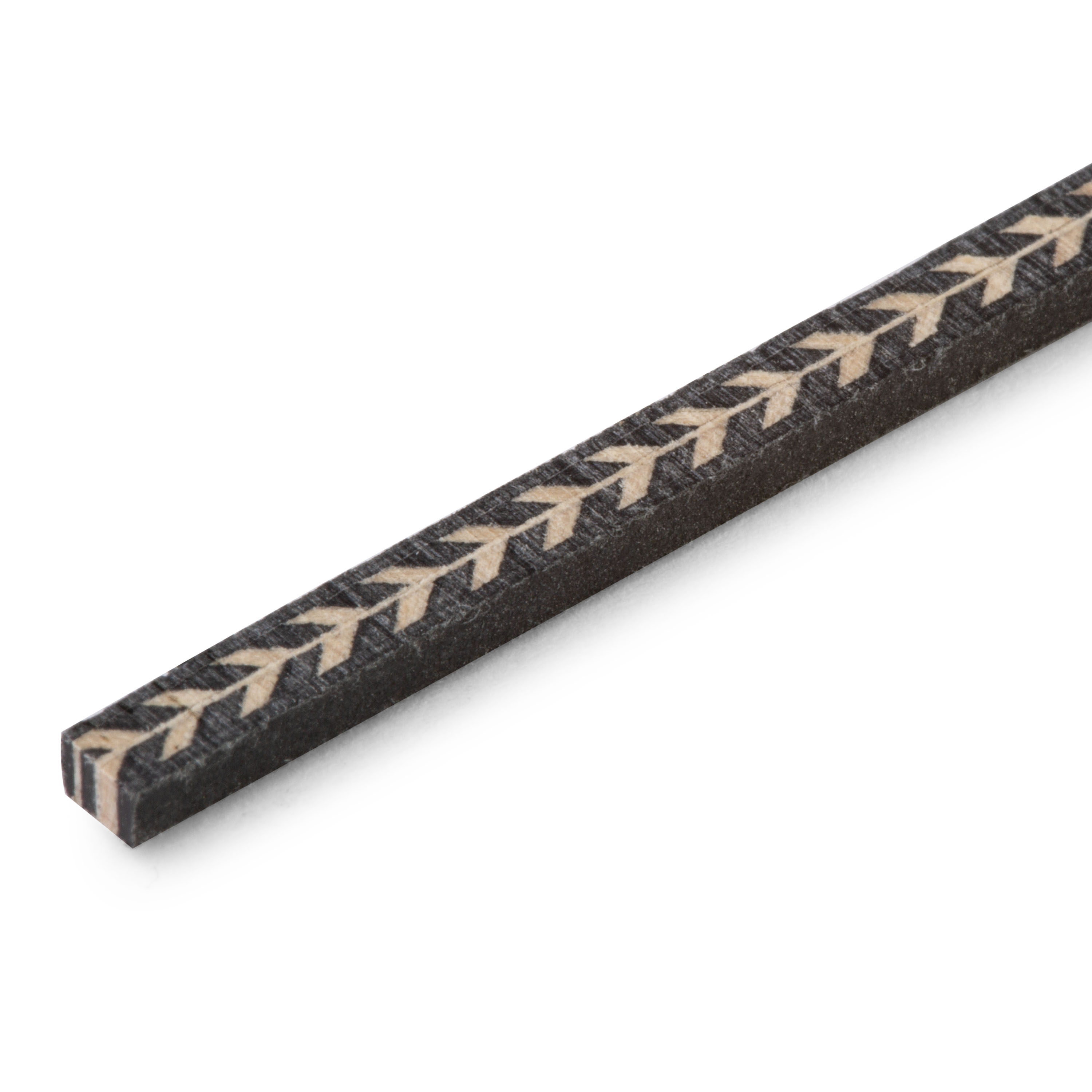 El clásico ribete Herringbone se ha convertido en un toque vintage característico de las bandas sonoras de guitarra acústica. El atractivo filete Herringbone que suministramos está laminado con fibra negra y madera "blanca" natural sin teñir, en tiras rectas.