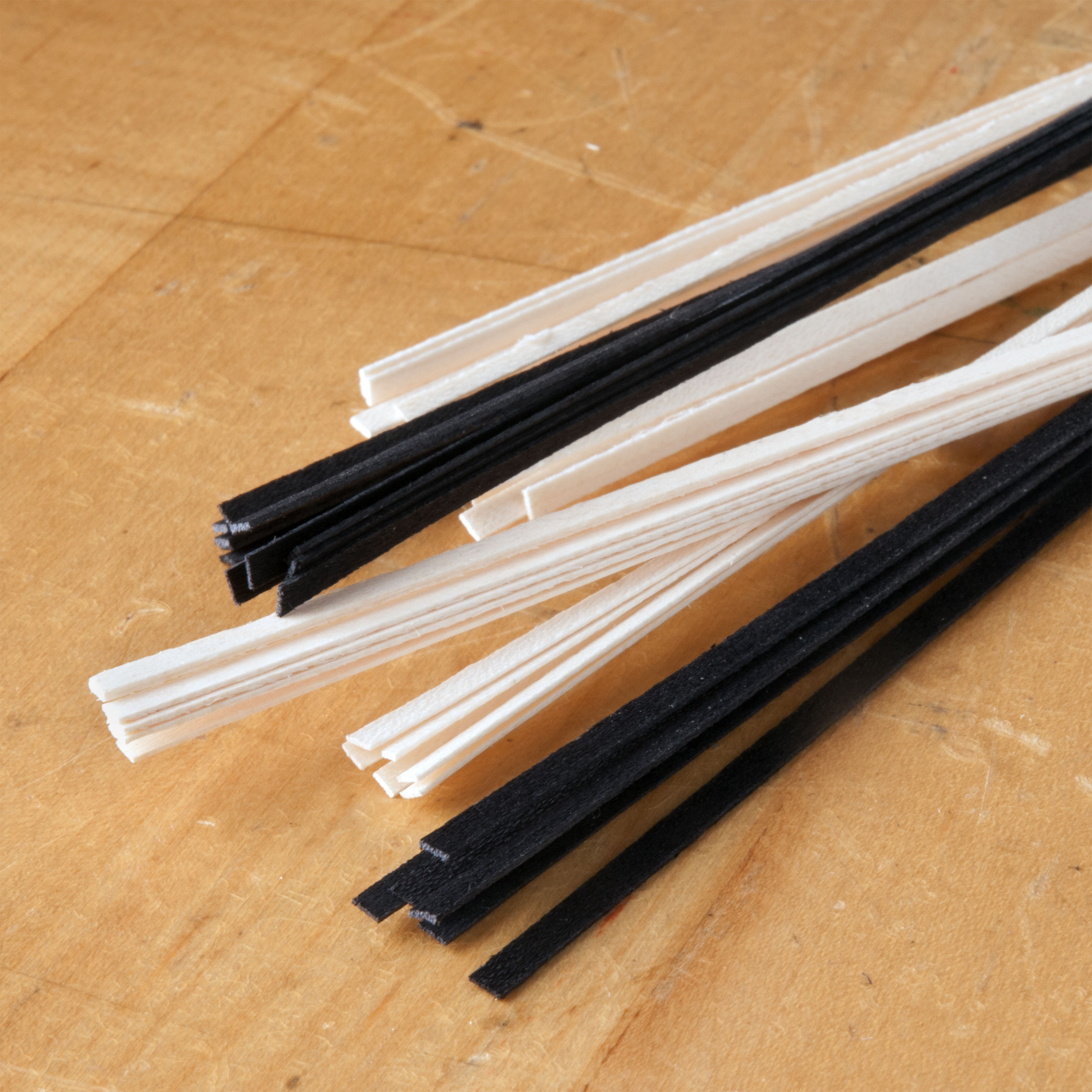Tiras del tamaño perfecto de una fina carilla. Listo para convertirse en rosetas o binding personalizados.