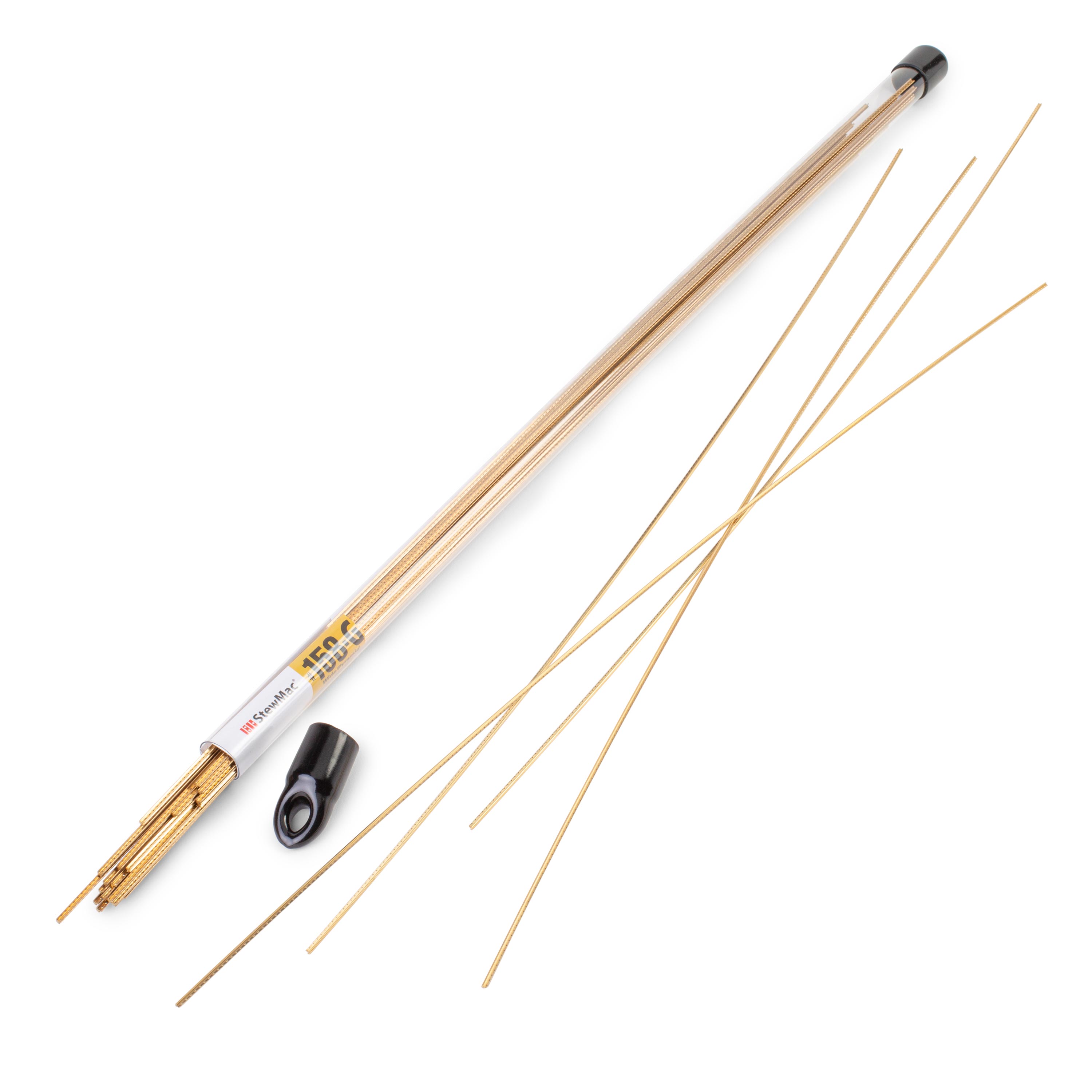 Suministramos nuestro alambre para trastes en varillas de 2 pies. Compra 6 pies para los trastes de una guitarra completa o un bajo, y 4 pies para los trastes de una mandolina, banjo o ukelele.