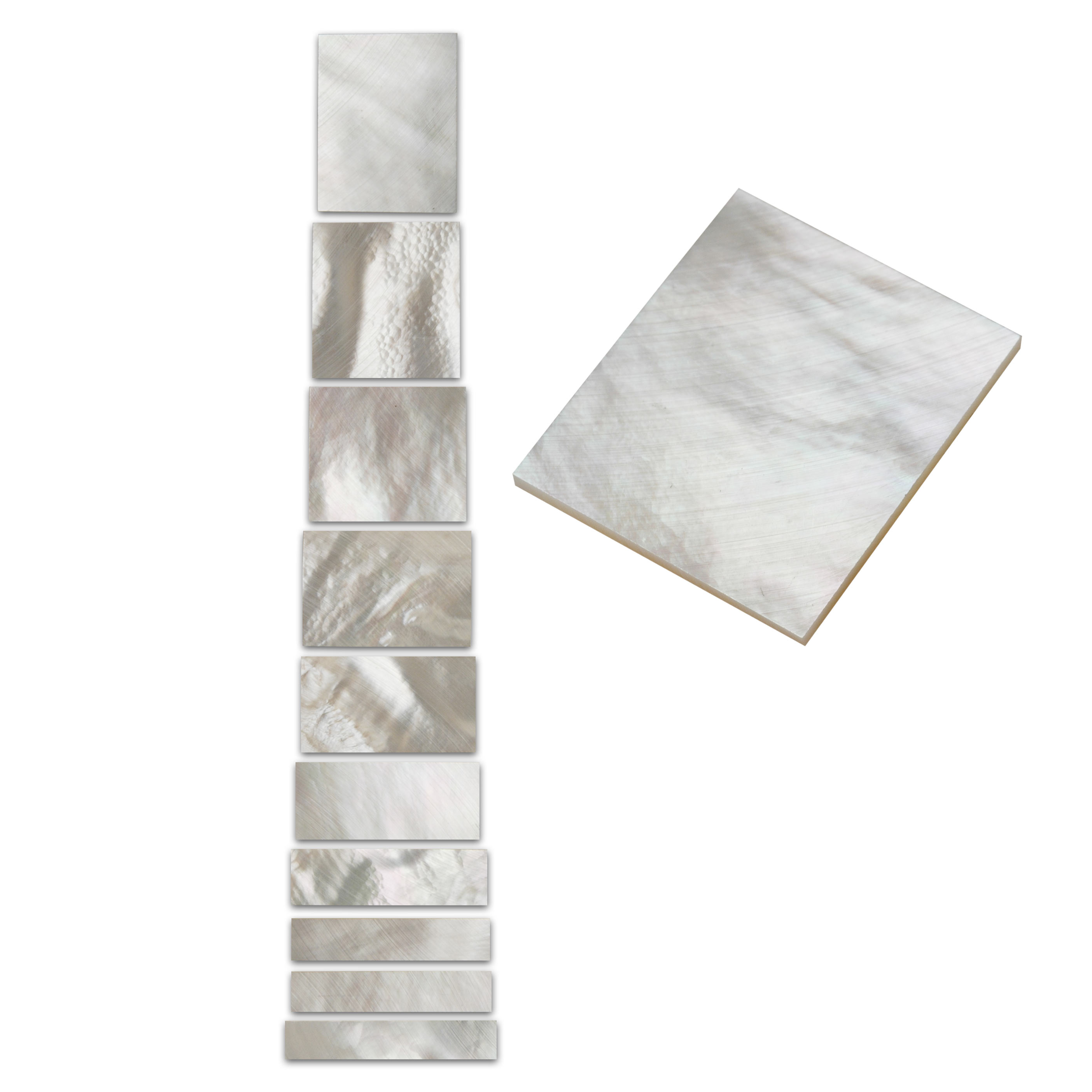 ¡Para un look personalizado de alta gama! Las icónicas formas rectangulares están confeccionadas con auténtica perla blanca con iridiscencia y figuras naturales.