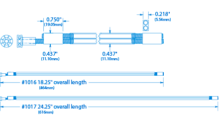 El sistema de ajuste del mástil de Hot Rod cuenta con dos varillas en collares roscados de latón. La varilla activa de acero inoxidable gira para una alineación suave del mástil , con acción bidireccional. La Hot Rod requiere una cavidad de acceso para la tuerca de ajuste y una ranura recta de 7/32" de ancho x 7/16" de profundidad (medida desde la parte inferior del panel de trastes) para la instalación. La barra de 18,25" es compatible con muchas guitarras eléctricas; la barra de 24,25" es compatible con bajos. La longitud total incluye la tuerca.