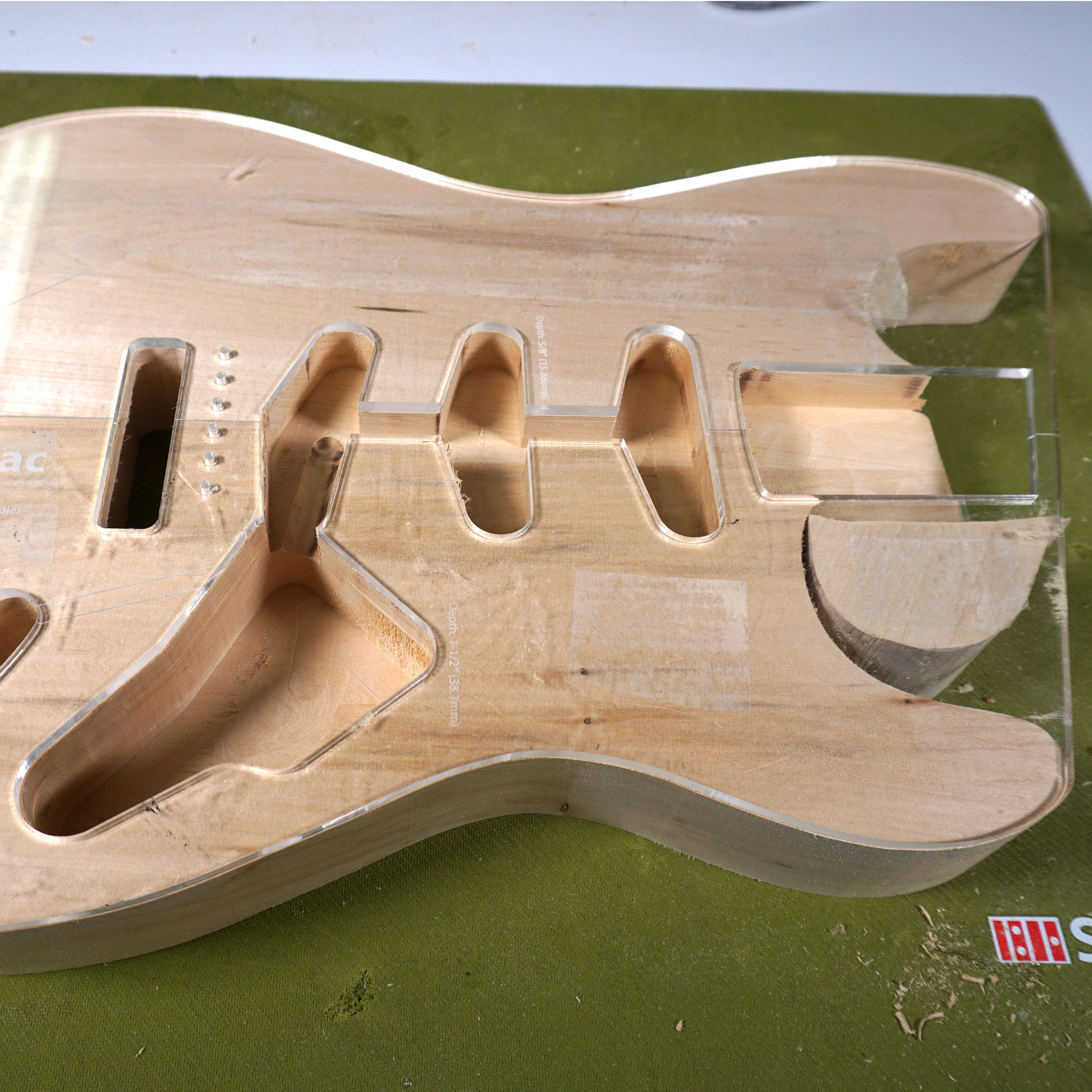 Aunque la plantilla corporal incluye las guías de router para las tres camionetas tradicionales Single-Coil, puede crear su Strat para que se adapte a su estilo. También hemos creado modelos complementarios para humbucker/ Single-Coil/humbucker (H/S/H) y opciones de fresado universal o de "piscina de baño".
