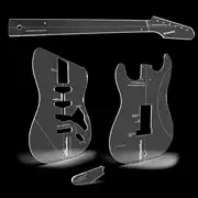 Incluye dos plantillas de tamaño completo con forma de cuerpo, cavidad del mástil, cavidades de control, canal de cableado, tres cavidades tradicionales de pastilla de Single-Coil, jack y ubicación del puente.
