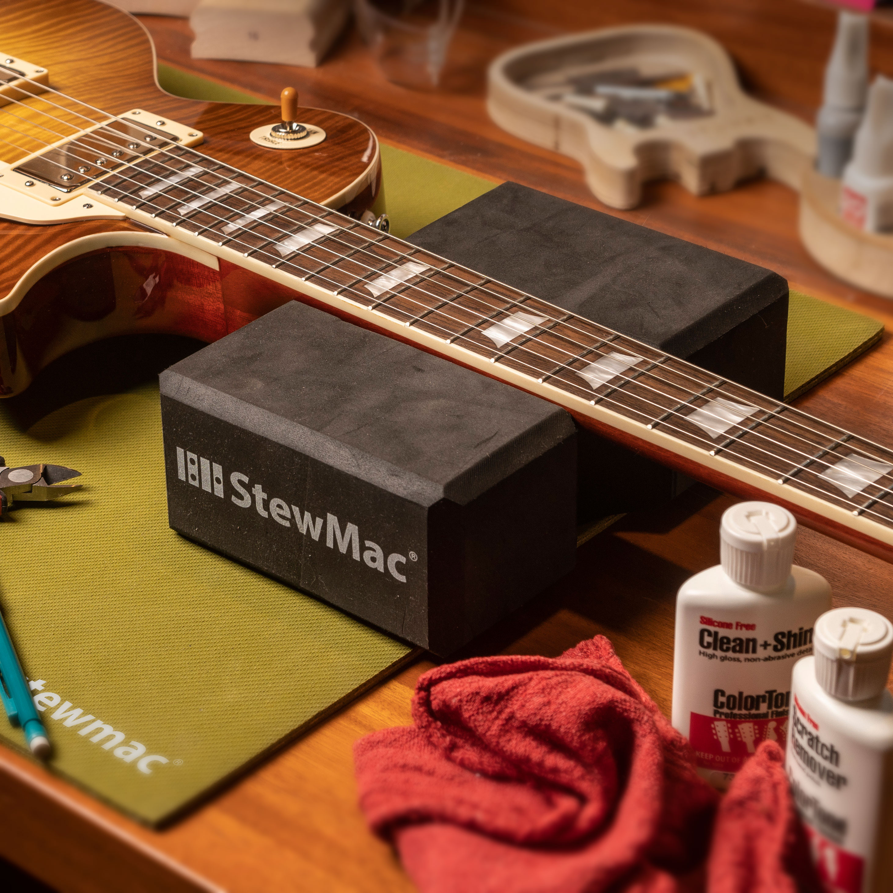 - Solucione los problemas relacionados con nuestro producto más vendido, el archivo de apósitos Fret End y el protector de diapasón StewMac (juego de 6).