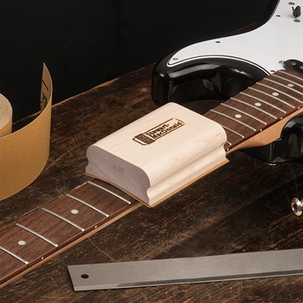 Los trastes preinstalados en su kit necesitarán un poco de nivelación y conformado. Con el bloque de radio puede nivelar de forma rápida y precisa los trastes y mantener con precisión el radio del diapasón al mismo tiempo. ¡El archivo de aderezo Fret 3-Corner es el archivo de coronación de trastes favorito de Dan Erlewine! Esta lima personalizada es perfecta para dar forma a la parte superior de tus fajas para que puedas jugar sin zumbidos. El Martillo para Trastes le permite sentar cualquier frita que pueda haber aparecido.