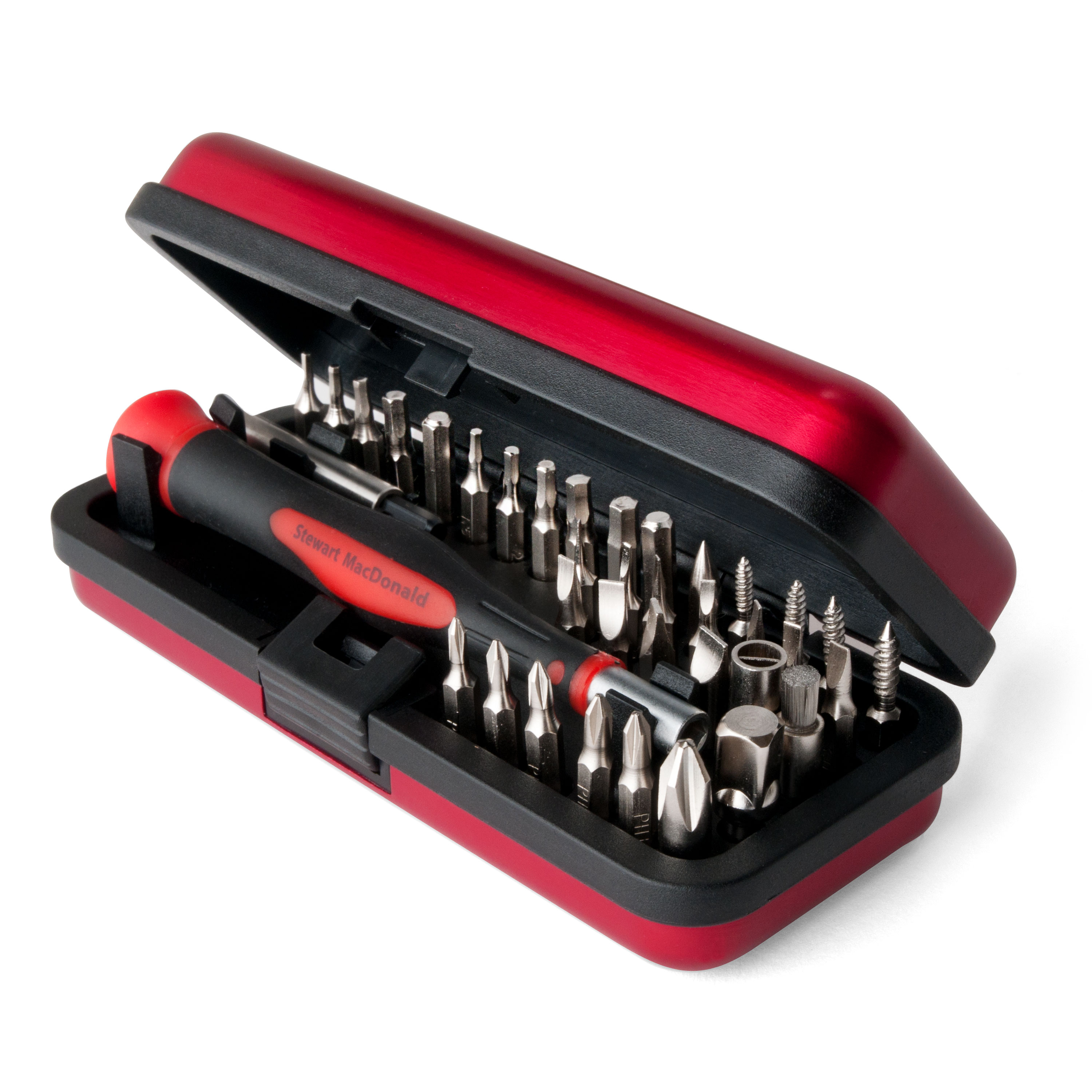 - Herramientas de limpieza de guitarra StewMac (juego de 13 piezas más una práctica bolsa de viaje)