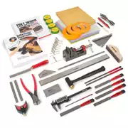 ¡Tenga la confianza de hacer el trabajo de manera rápida y rentable! Se sorprenderá de lo mucho que puede lograr con estas herramientas y lo rápido que puede obtener resultados profesionales. Este set incluye todo lo que necesitas para una configuración profesional, un trabajo de trastes, la fabricación de la cejuela y la silleta, el retoque de los acabados (y mucho más), el pan y la mantequilla de cada técnico de reparación exitoso.