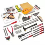 - Nivela, corona y viste los trastes con Fret Leveler (6"), Fret File de doble borde, Fret End Dressing File, Fret Dressing Stick con cinturones Micro-Mesh (14 cinturones)