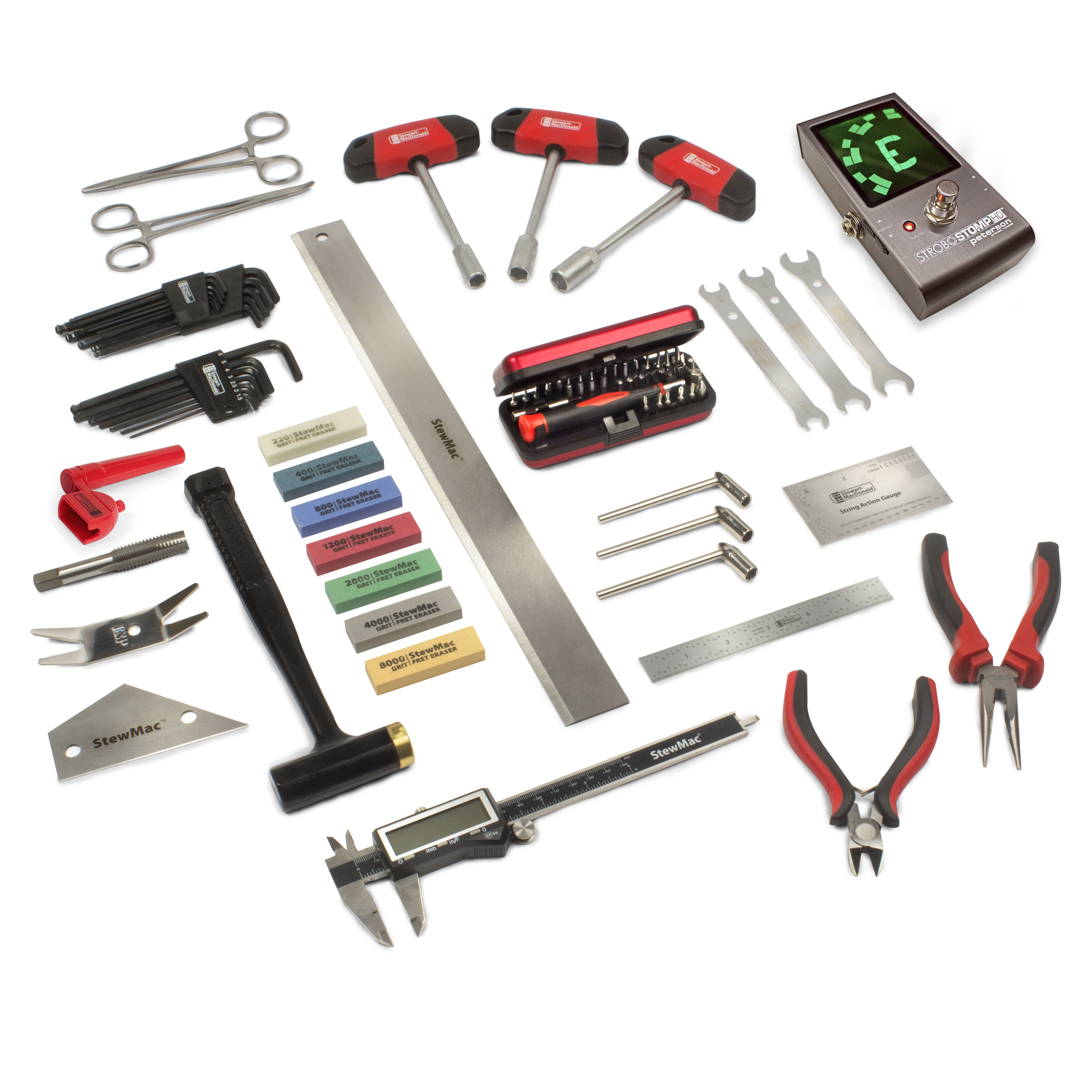 la revista “Como técnico en guitarra, sé lo importante que es estar preparado con las herramientas adecuadas, ya sea en la carretera, en el estudio o en el taller de reparación. La Guitar Tech Set de Herramientas de StewMac tiene todas las herramientas que necesitas para cualquier configuración básica de guitarra; todas las herramientas para configurar la entonación, el ajuste del mástil , la comprobación de la altura de la cuerda y el traste y el cambio de cuerdas están incluidas. El juego de destornilladores Guitar Tech y el medidor de acción de la cadena siempre están a mi alcance en mi banco. Con este kit, tienes todo en un solo lugar, al alcance de tu mano, dondequiera que te lleve la carretera”.