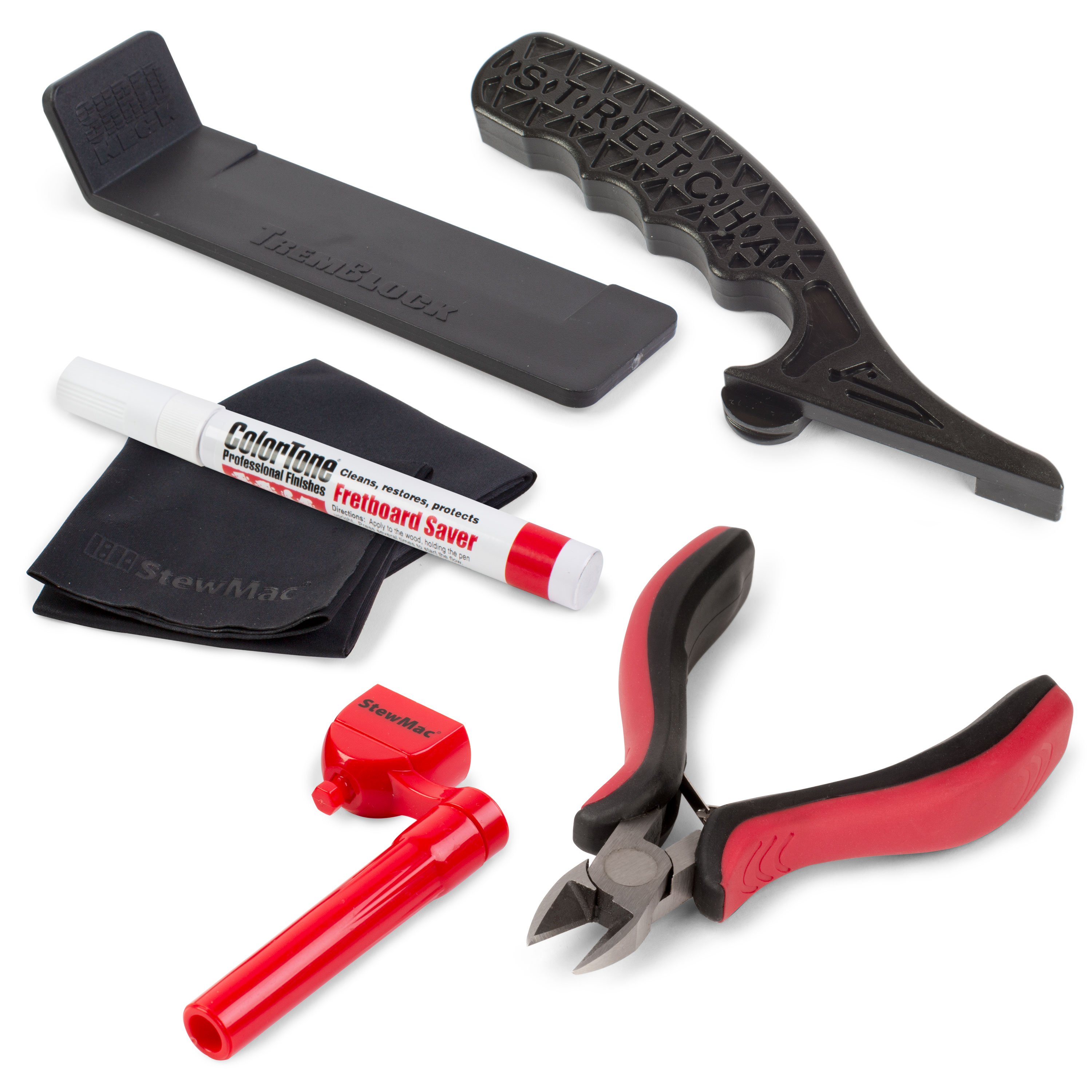 Con este juego, conseguirás que nuestro cortador de cuerdas profesional corte tus cuerdas fácilmente directamente en el poste, el enrollador de cuerdas para sintonizar rápidamente, el protector de cuerdas ColorTone Fretboard Saver para limpiar y proteger rápidamente tu tabla, el String Stretcha para sintonizar cuerdas rápidamente y dos paños pulidores para mantener limpia cada parte de tu guitarra.