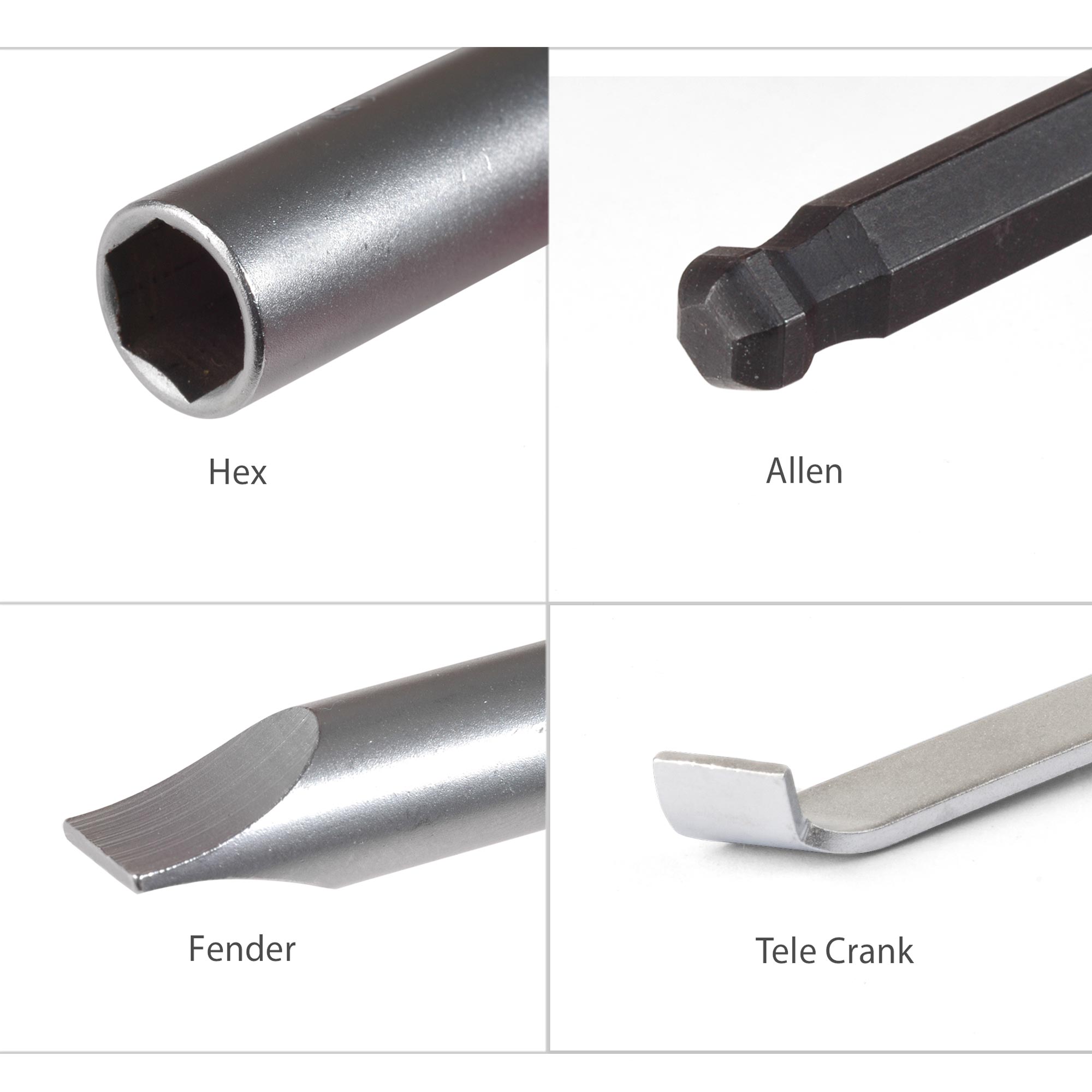Juego de 18 para ahorrar dinero en el taller de reparación. Nuestros veteranos técnicos de guitarra desarrollaron estas llaves de acero de alta calidad.