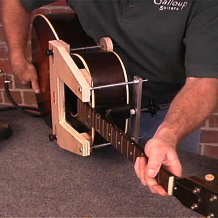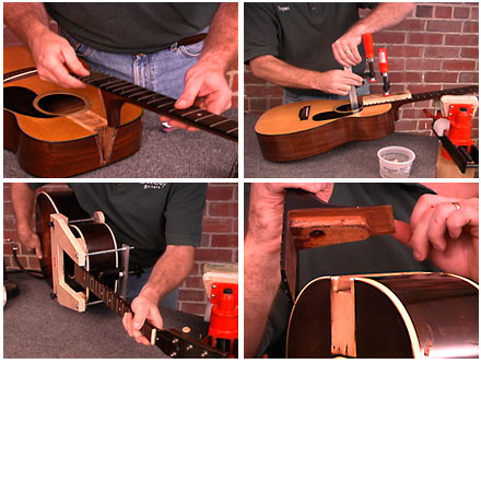 • Bryan resets a Gibson J-45 neck and repositions it to correct intonation problems.
