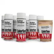 Todo lo que necesita para terminar un solo instrumento de principio a fin. Todo está ahí, desde llenar los poros hasta pulverizar la capa transparente final. Nunca ha sido tan fácil conseguir un acabado realmente perfecto con aerosoles de calidad profesional fáciles de usar. Hemos elegido las cosas adecuadas que necesita para obtener el aspecto que desea, sin necesidad de adivinar qué relleno, color o cuánta laca necesita. Todo está ahí y listo para que pulverices tu acabado perfecto. Hemos escrito instrucciones para cada conjunto y nuestro equipo técnico está aquí para ayudarte si tienes alguna pregunta.