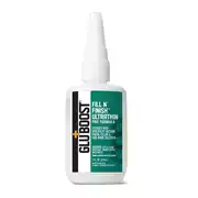 Los productos Fill n' Finish de GluBoost tienen un secado muy lento. Por ello, el acelerador GluBoost GluDry Non-blushing (sin efecto blanquecino) debe utilizarse junto con TODOS los productos Fill n' Finish. Agitar bien antes de usar. En el caso de los adhesivos con color, puede producirse una separación natural; solo tienes que volver a agitar bien para reactivarlos.