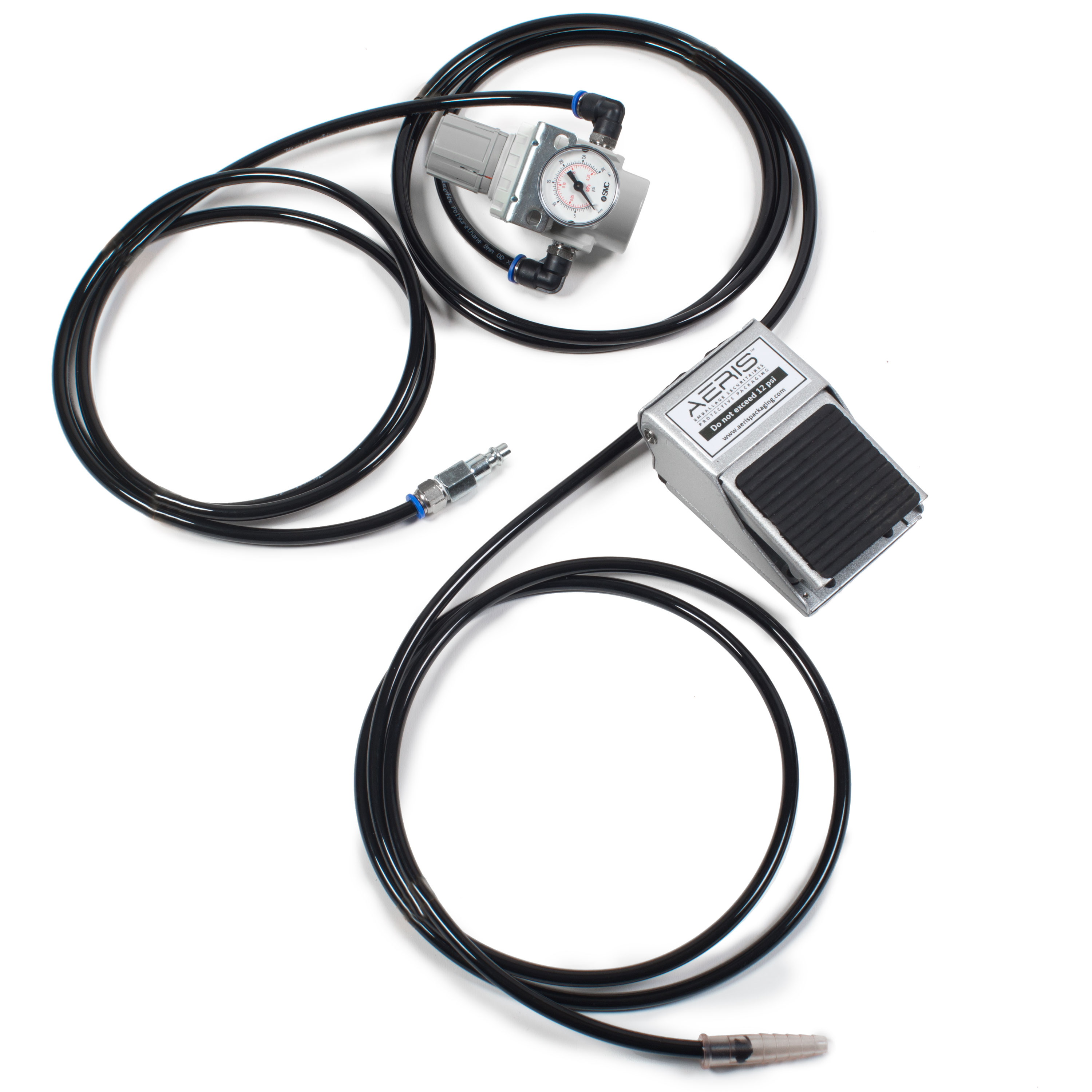 Los inflables están diseñados para llenarse a 12 PSI, pero la mayoría de los compresores se llenan a una velocidad mucho más rápida. Este regulador baja el PSI al nivel correcto e incluye un pedal para facilitar aún más el llenado.