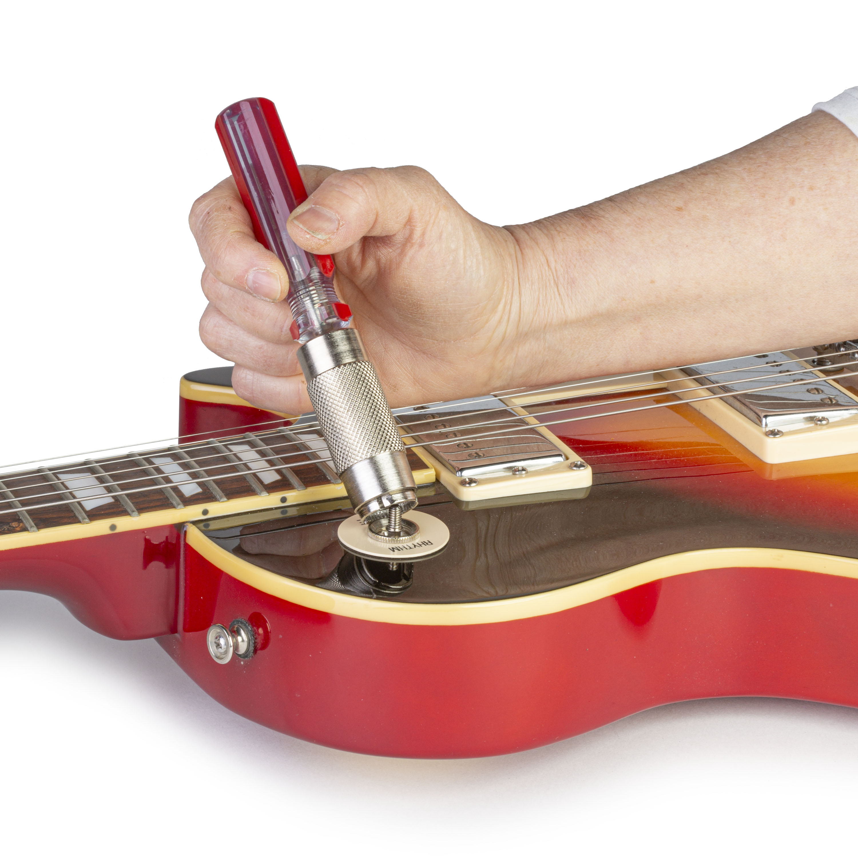 Esta es una llave especial ideal para las tuercas de montaje estriadas redondas en los interruptores selectores de pastilla Gibson®.