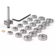 | Incluye: • 19 tamaños de cojinete • Broca para enrutador • Llave Allen • Casquillo de extensión • Instrucciones |