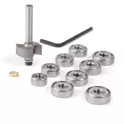 | Incluye: • 9 tamaños de cojinete • Broca para enrutador • Llave Allen • Casquillo de extensión • Instrucciones |