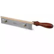 Nuestra sierra de ranurado Fret tiene una columna rígida de latón y un cómodo mango de madera dura tradicionalmente torneado con casquillo. Se ve como en casa en el banco de trabajo de un luthier.