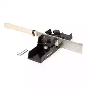 El tope de profundidad acrílico transparente ajustable con tornillo de mano se desliza hacia arriba y hacia abajo para un control preciso de la profundidad de la ranura del traste. Es extraíble para cortar los extremos de una diapasón en blanco, o para usar con nuestra caja de miteres de ranurado Fret.