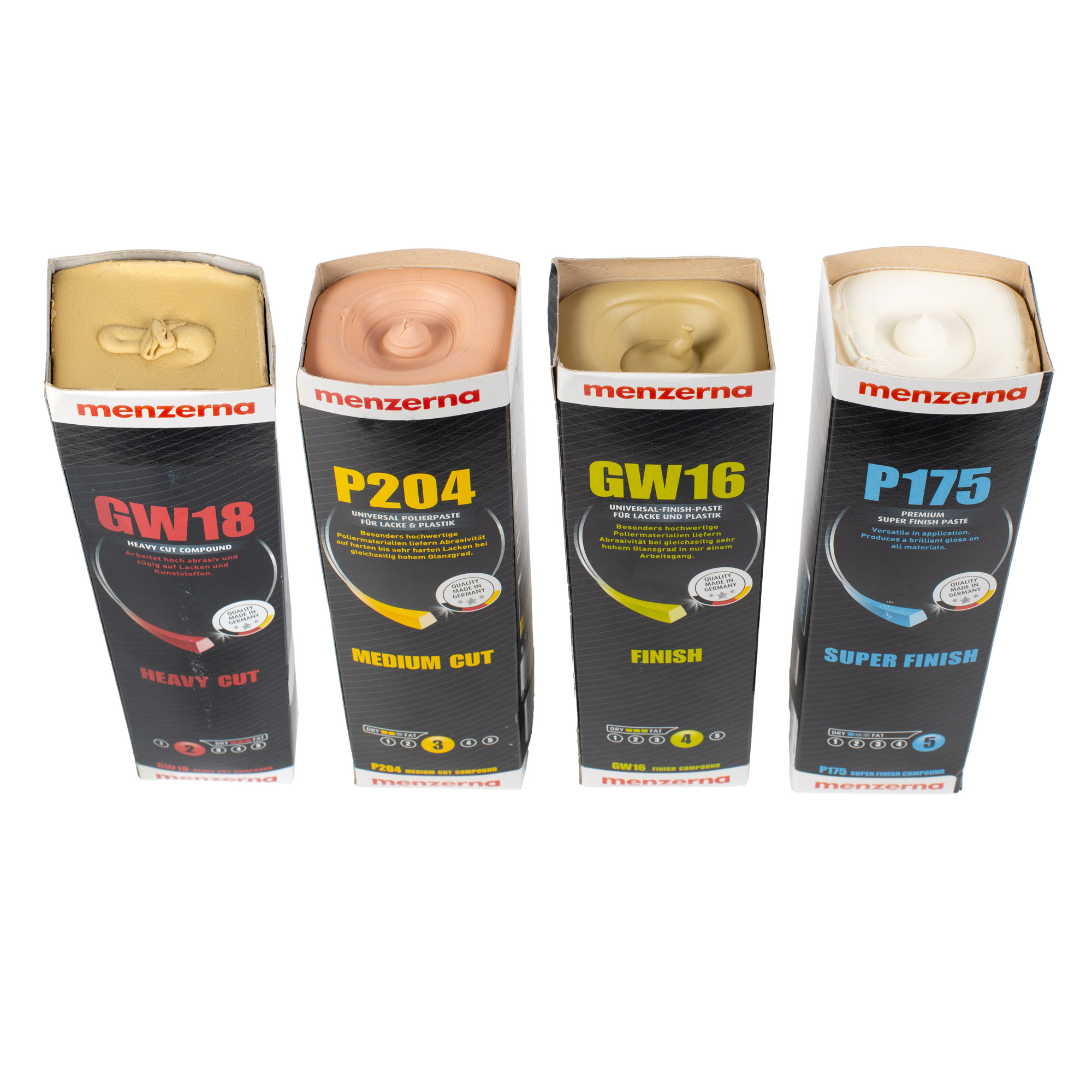 Los compuestos de pulido Menzerna han sido durante mucho tiempo el estándar de la industria preferido los mejores finalistas de guitarra profesionales. Ningún otro producto de pulido proporciona un acabado de alto brillo como Menzerna. Los compuestos medios y finos incluyen lubricación para una aplicación suave y protección adicional durante el proceso de pulido. Menzerna se utiliza en las mejores tiendas del mundo.