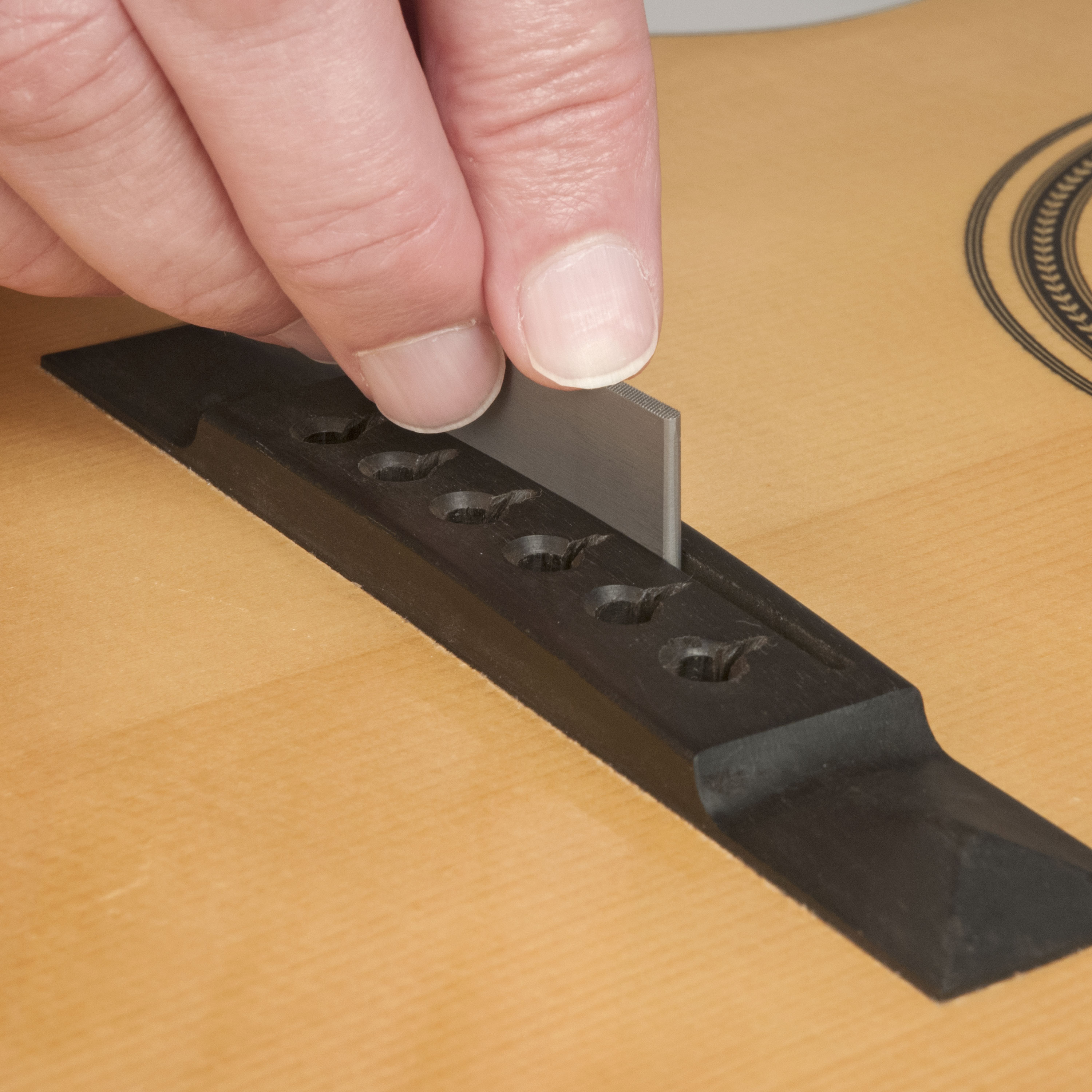 Dos anchos para adaptarse a las ranuras de silleta de puente de guitarra acústica estándar. El archivo de 1/8" también es útil para las ranuras de las tuercas del guardabarros.