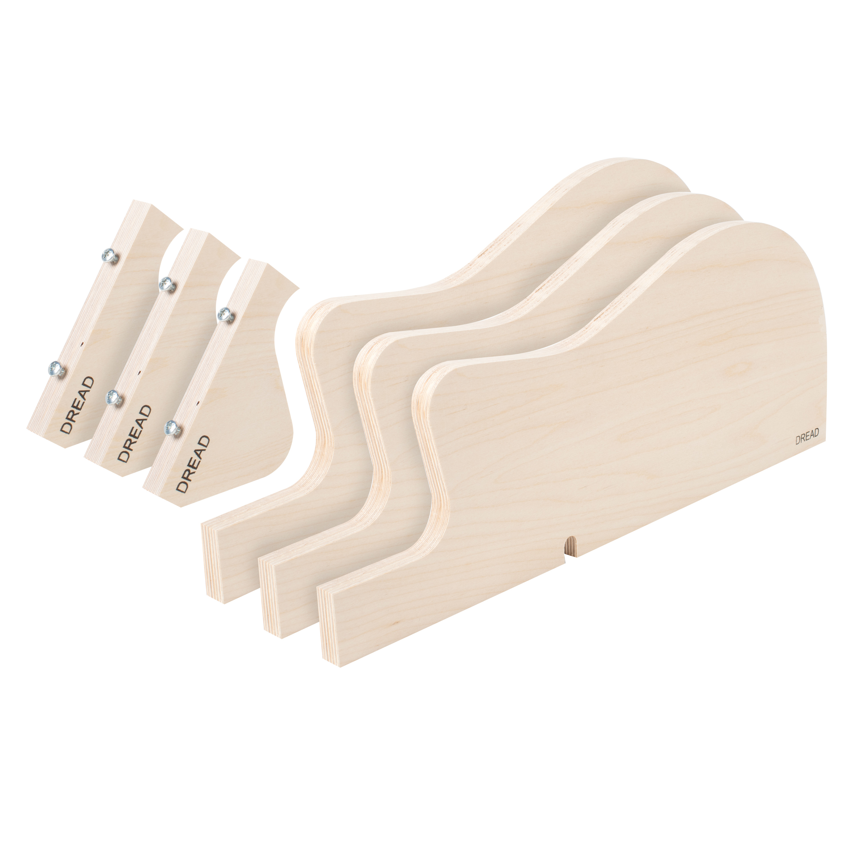 Fabricadas con abedul báltico duradero de 13 capas, estas formas están fabricadas para una vida útil de constituciones. Cada juego incluye tres formas que abarcan todo el ancho del lateral. El soporte de tres formas evita la torsión para lograr curvas consistentes y repetibles.
