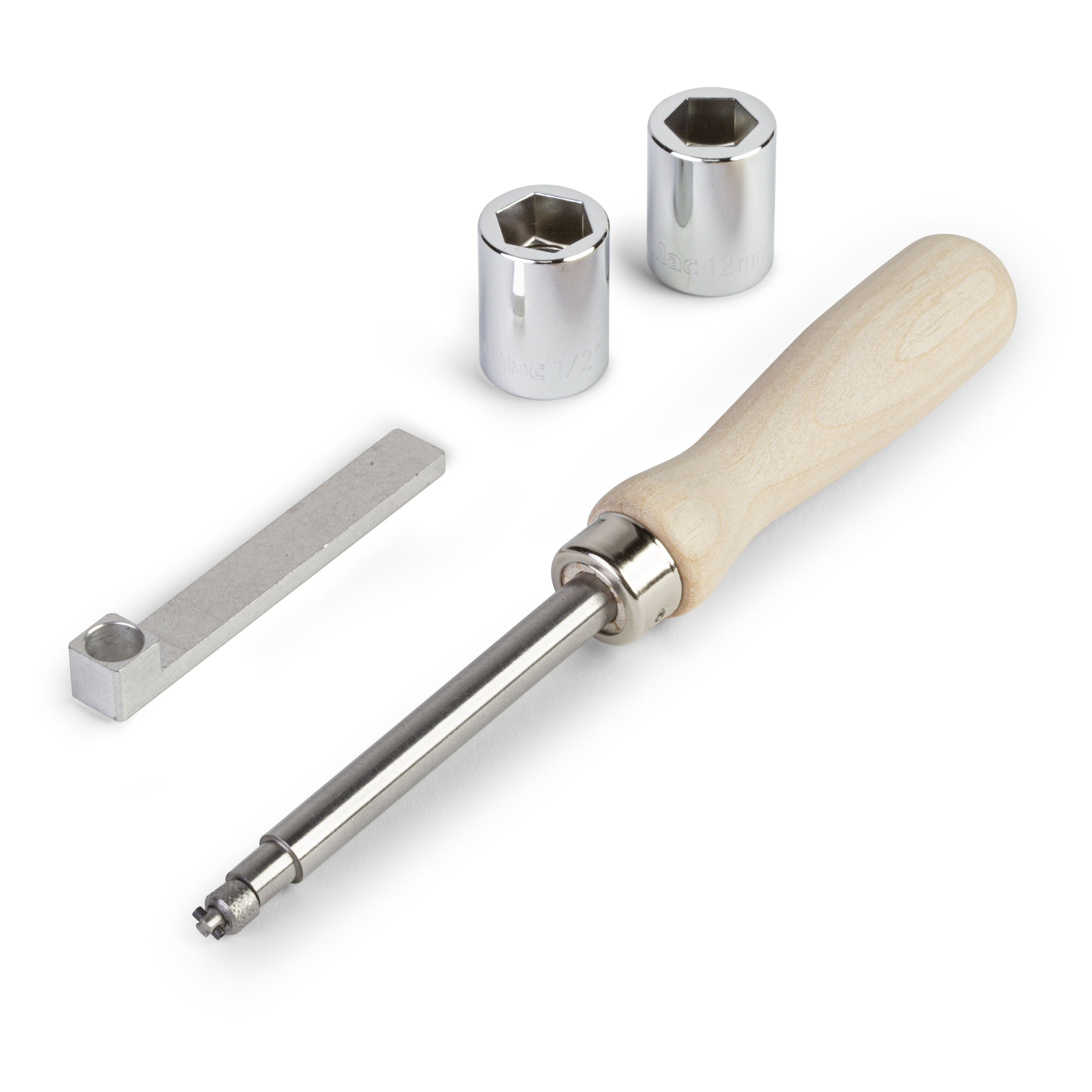 Diseñado por el veterano reparador Frank Ford, Jack The Gripper es una herramienta inteligente que puede ahorrarle mucho tiempo y trabajo. Insértelo en el jack y la leva estriada se bloqueará en cualquier dirección para sujetar el jack firmemente mientras aprieta o afloja la tuerca.
