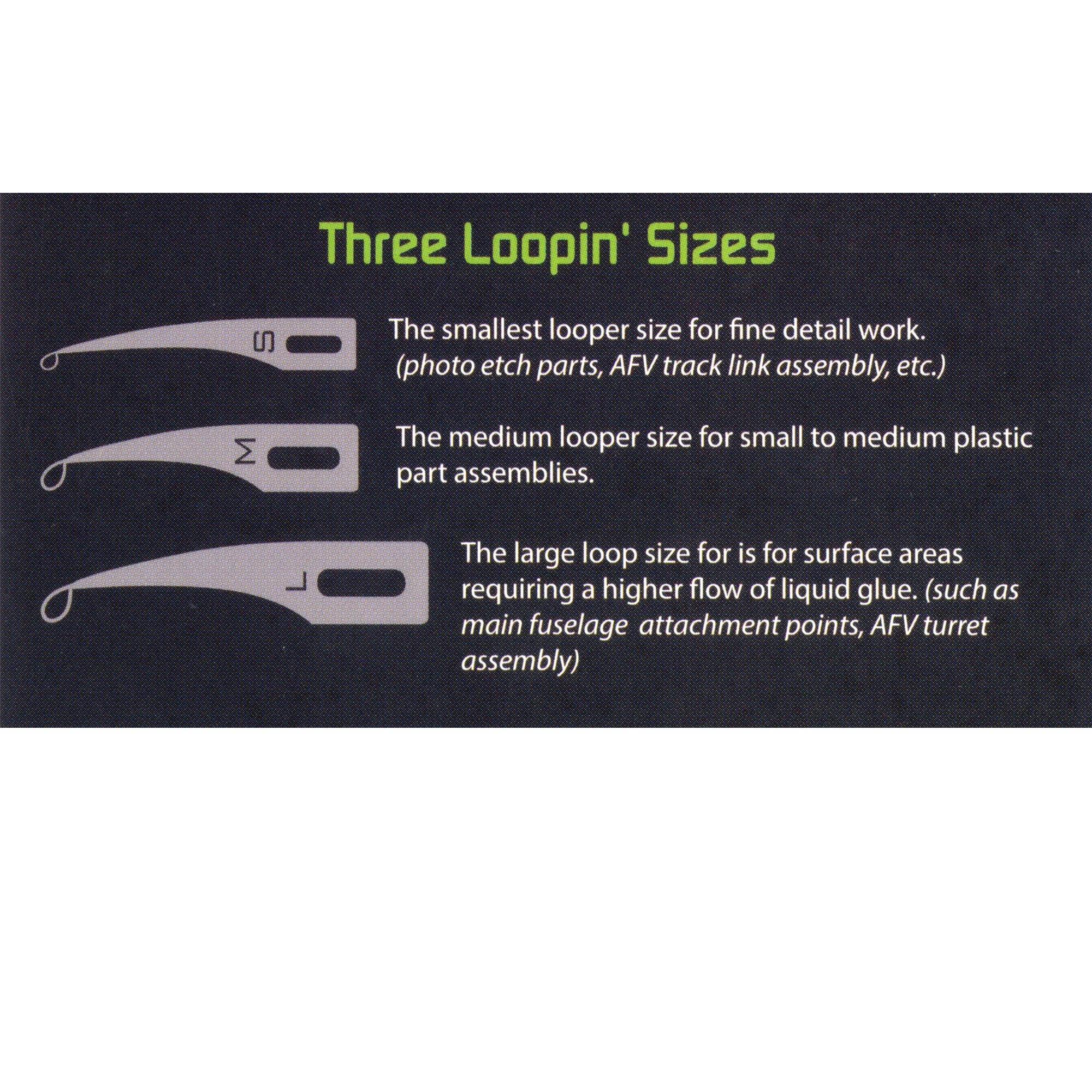 Funciona con líquidos de baja viscosidad como pegamento, tinte y laca. La acción capilar tira del líquido hacia el interior del bucle, formando una gota precisa para la reparación del acabado o la unión de pegamento. Incluye 10 puntas de acero; 4 de tamaño pequeño y mediano y 2 de tamaño grande.