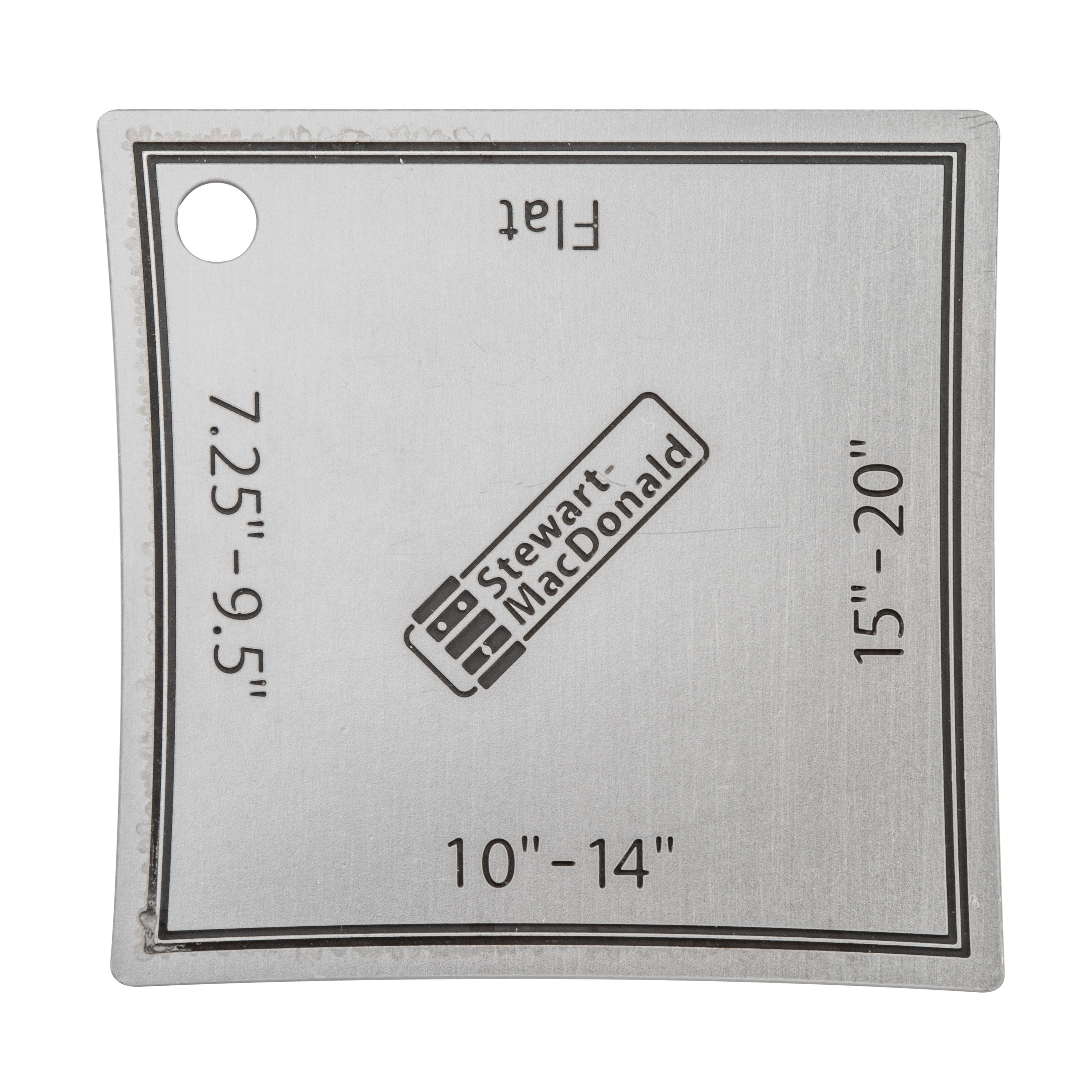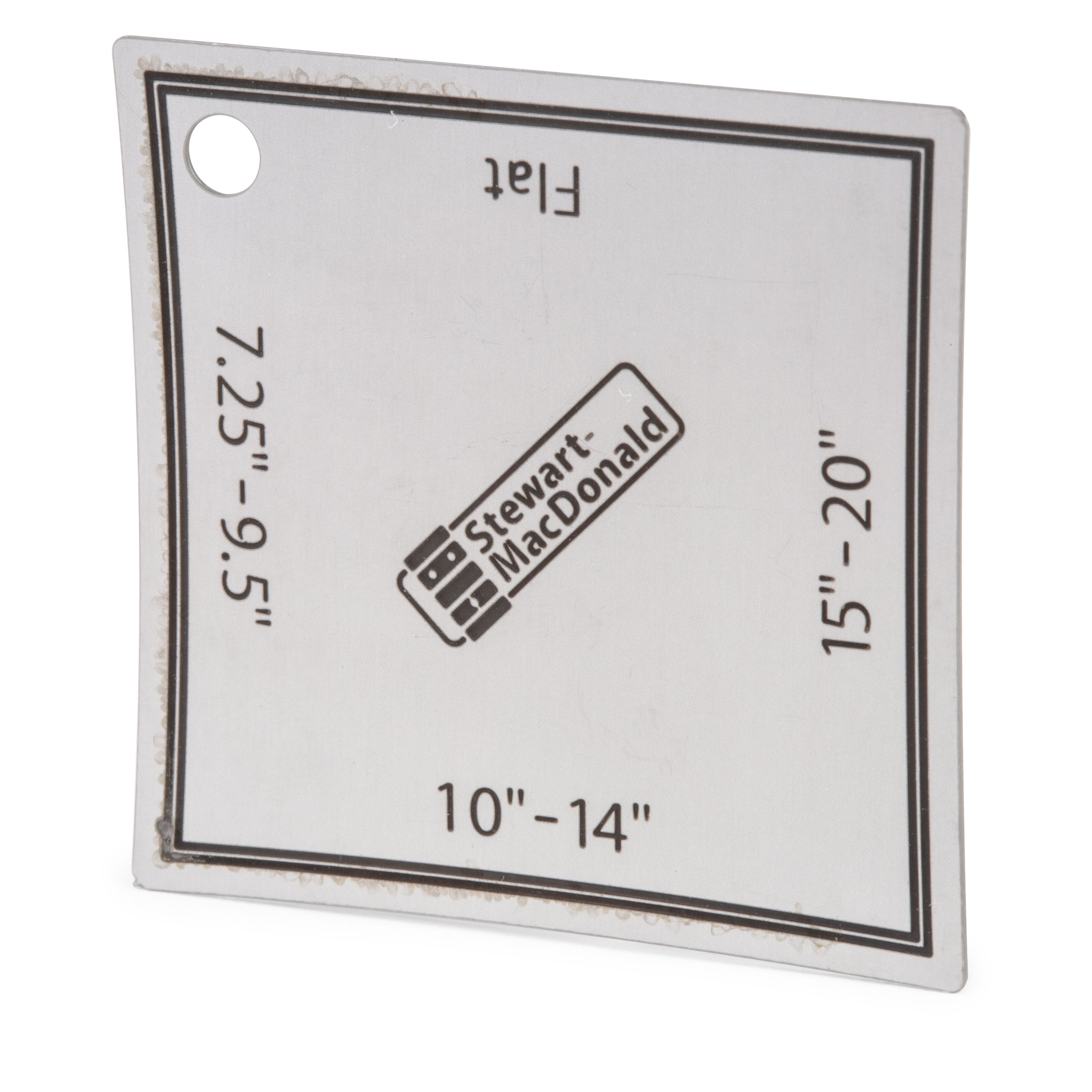 El indicador se mecanizado a partir de 0,018" (0,46 mm) de acero inoxidable para mayor durabilidad en el taller de reparación, y encaja en cualquier ranura de traste. Es una gran ayuda para trabajos de entrastado (se adapta a los portadedos unidos), para establecer el tope de profundidad en nuestra sierra de ranurado de trastes ajustable y para establecer la altura de corte de nuestra hoja de sierra de mesa de ranurado de trastes. La superficie grabada sin brillo es fácil de leer y los bordes curvados se adaptan a todos los fretboards radiados y planos más populares.