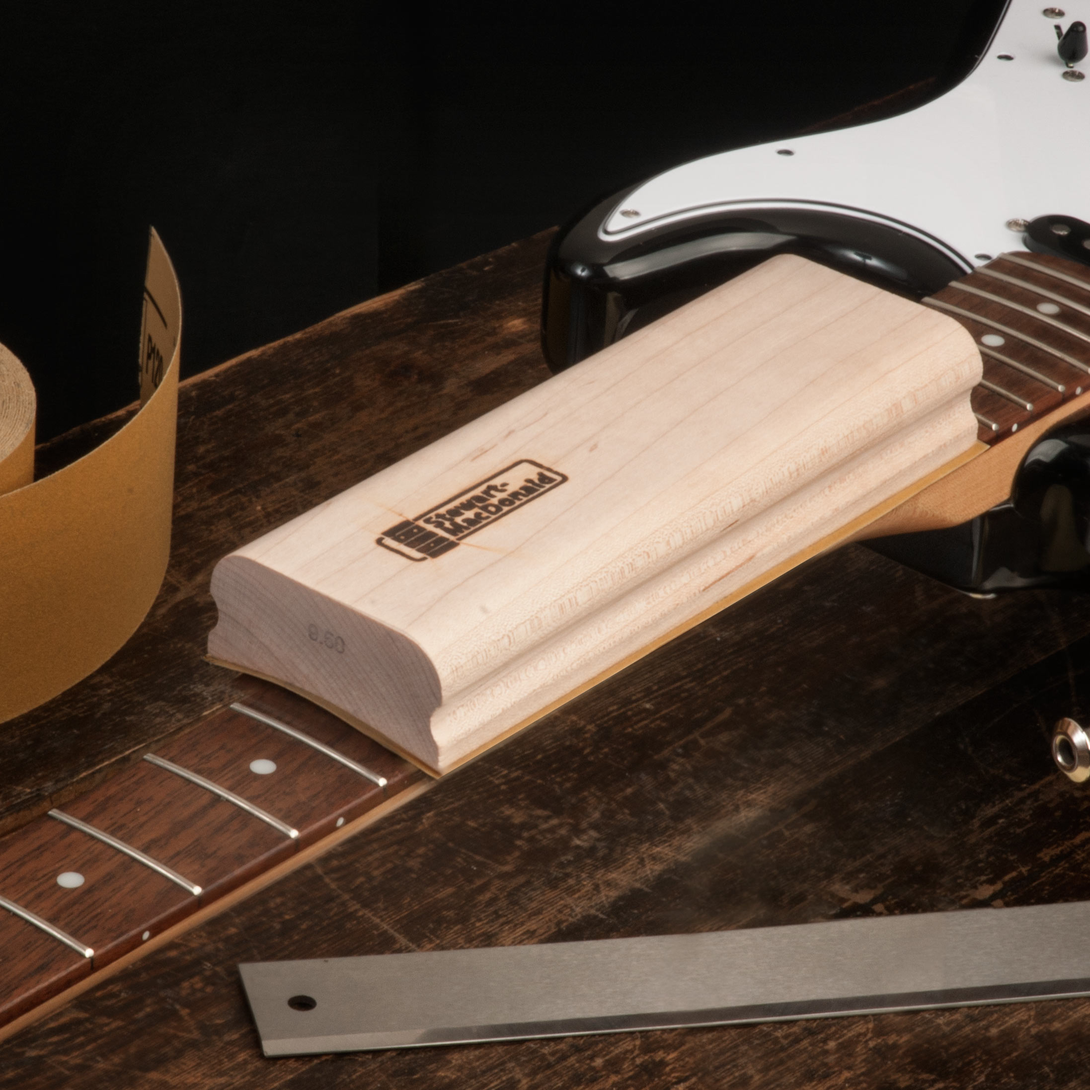 Fabricamos estos bloques de madera dura para usarlos con abrasivos Stikit, lo que permite radiar el diapasón de forma rápida, precisa y sin tener que hacer suposiciones.