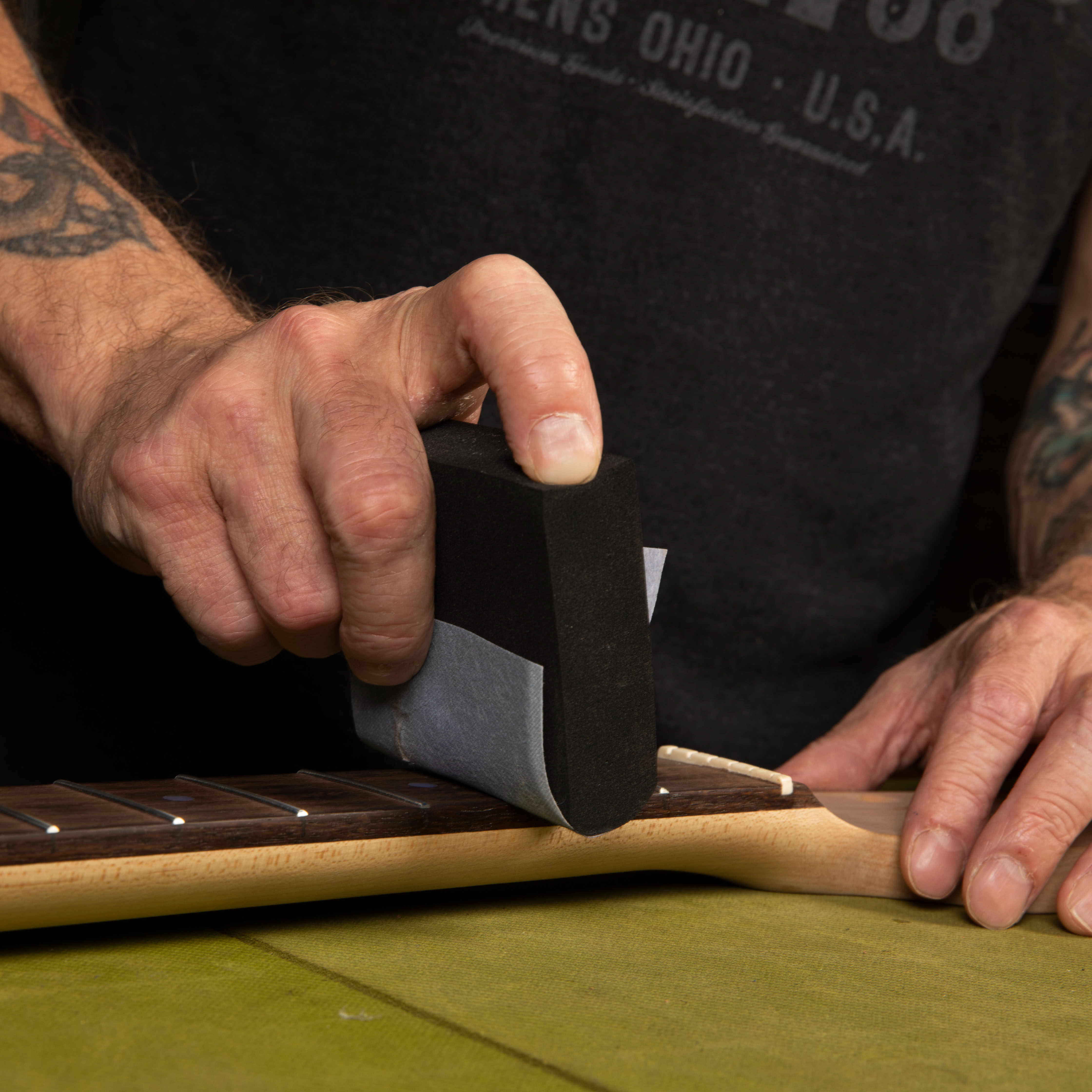 Debido a que se adaptan a cualquier forma de superficie, son ideales para pulir acabados de guitarra contorneados, trastes, pickguards de plástico, incrustaciones de perlas y más. Las primeras muestras que recibimos se acumularon celosamente, convirtiéndose rápidamente en nuestros talleres las favoritas para pulir tuercas y silletas, y para retoques en acabados lacados.