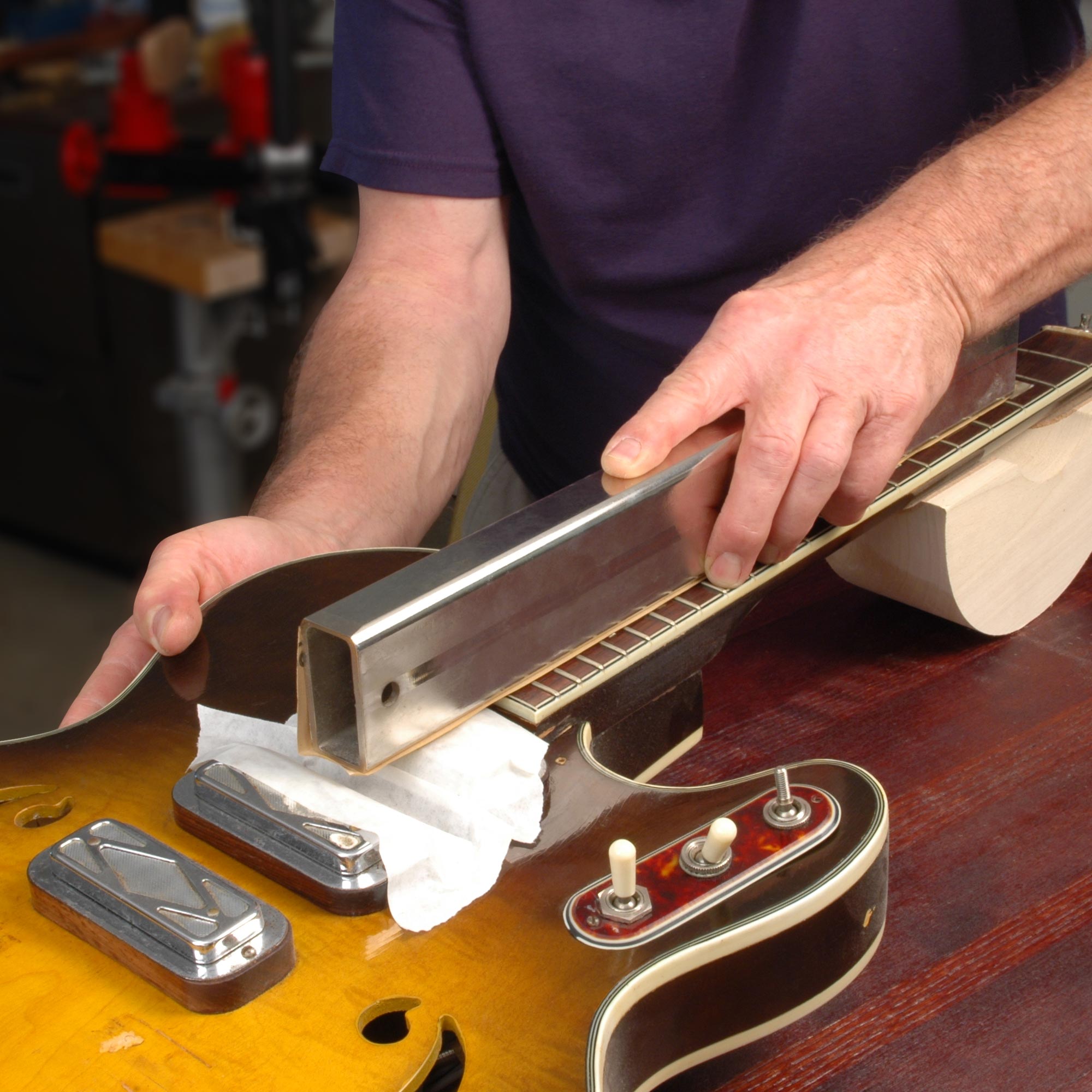 Eche un vistazo a nuestro juego de Fret y acabado con un ancho de 1", que es el ajuste exacto para nuestros niveladores Fret/Diapasón. ¡Ya no se desperdicia papel de lija!